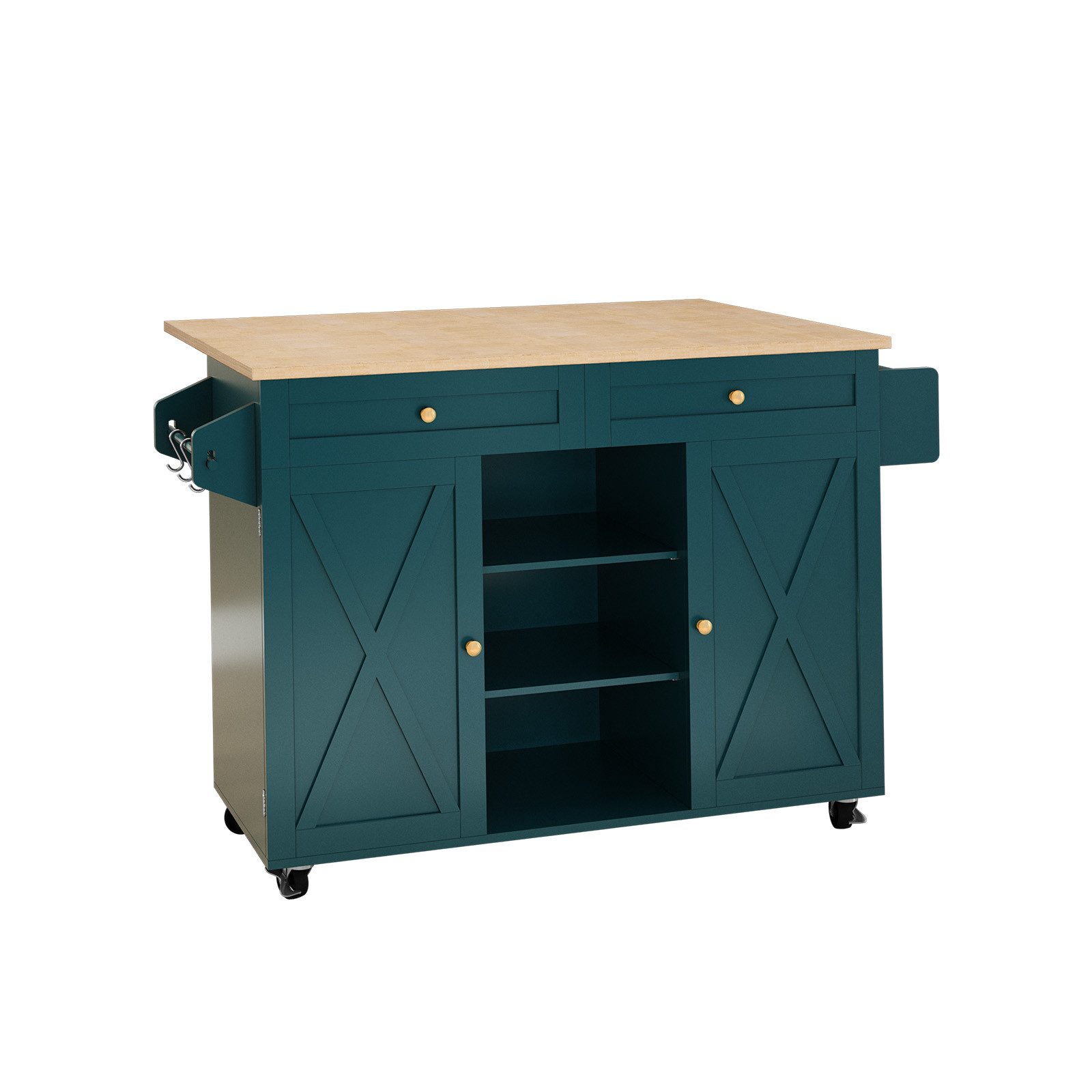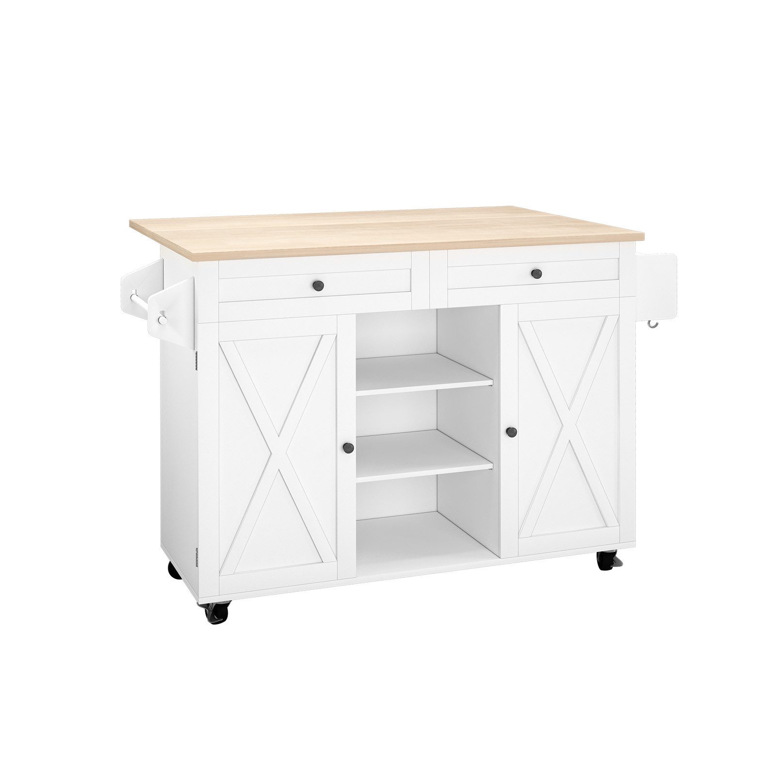 Set-Typ | Praktische Kücheninsel mit Klapptisch & 360° drehbaren Rollen – Stauraum. |