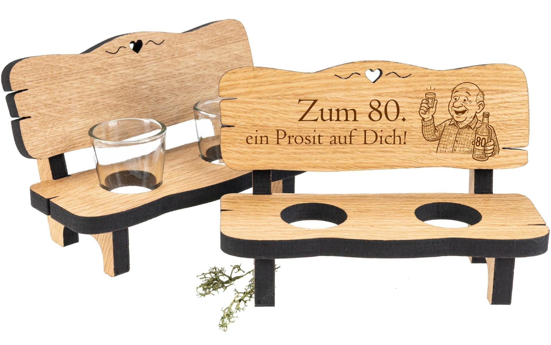 Ein besonderes Jubiläum verdient ein besonderes Geschenk: Diese Schnapsbank aus geölter Eiche ist eine humorvolle, stilvolle Überraschung zum 80. Geburtstag. Die Gravur „Zum 80. Geburtstag – ein Prosit auf dich!“ bringt Persönlichkeit und Freude auf jede Feier.