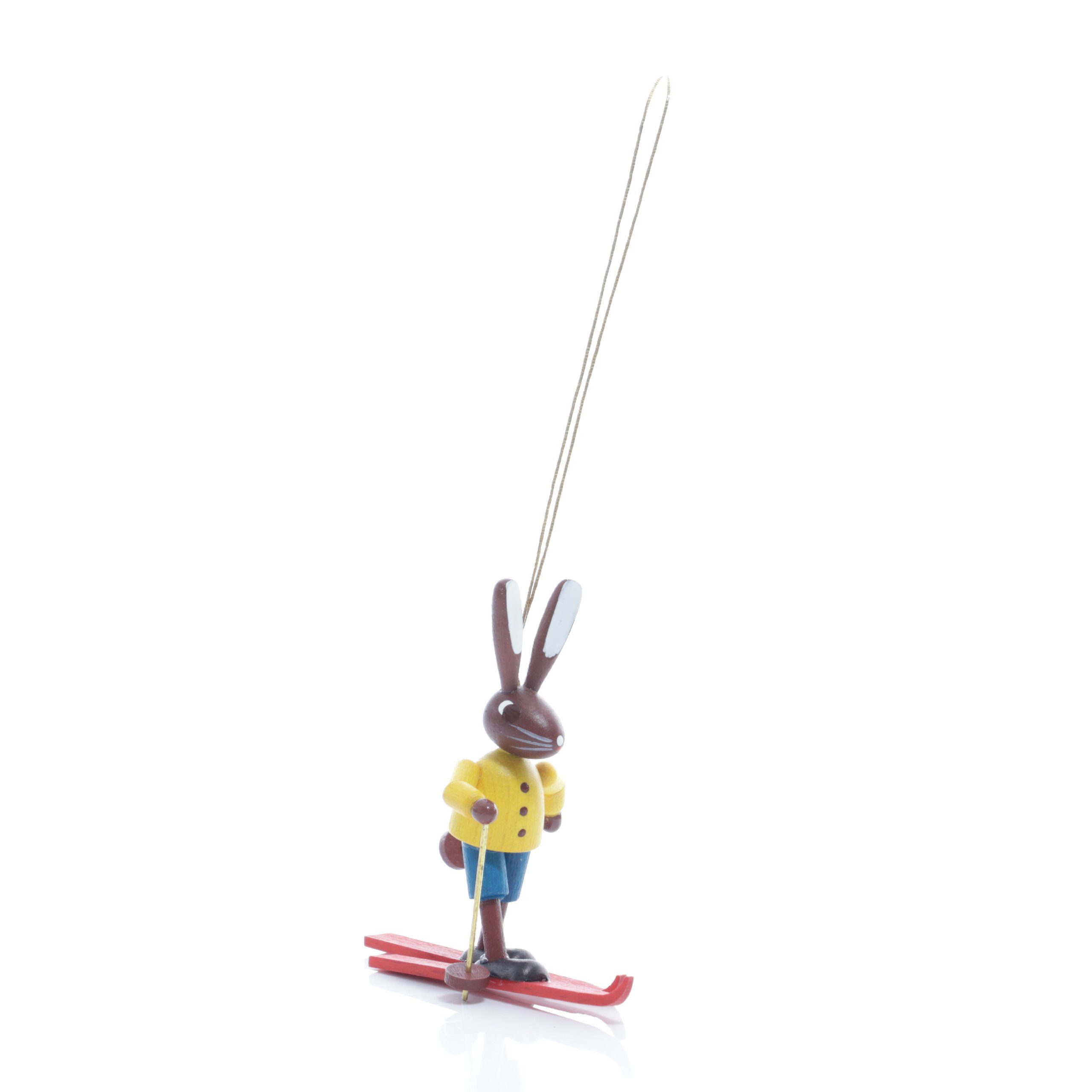 Osterdekoration Hase Skifahrer bunt Dieser schöne Osterhase hat eine Höhe von 5,5 cm und ist farbig gestaltet. Die Figur steht auf seinen Ski und hält in der Hand seine Stöcke. Der Hase kann am Faden an den Osterstrauch gehängt werden. Всеs wird in verschiedenen Arbeitsschritten komplett aus Holz in Seiffen gefertigt Höhe 5,5cm NEU |
