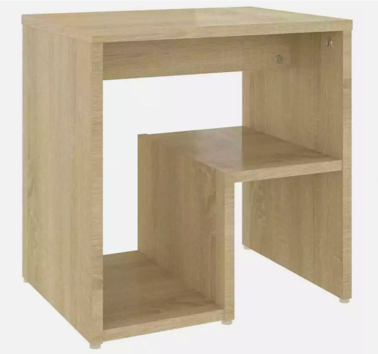 Dank der stabilen Konstruktion aus hochwertigem Holzwerkstoff ist der Beistelltisch besonders langlebig. Das offene Regal bietet ausreichend Stauraum für Bücher, Zeitschriften, Fernbedienungen oder andere kleine Gegenstände, die du stets griffbereit haben möchtest.