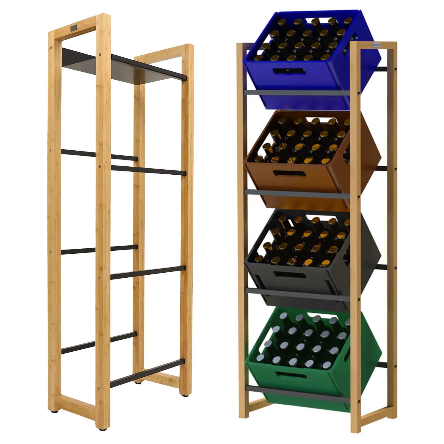 1x 2er Set Getränkekistenregal mit Ablage - Bambus / Schwarz - 8 Kisten