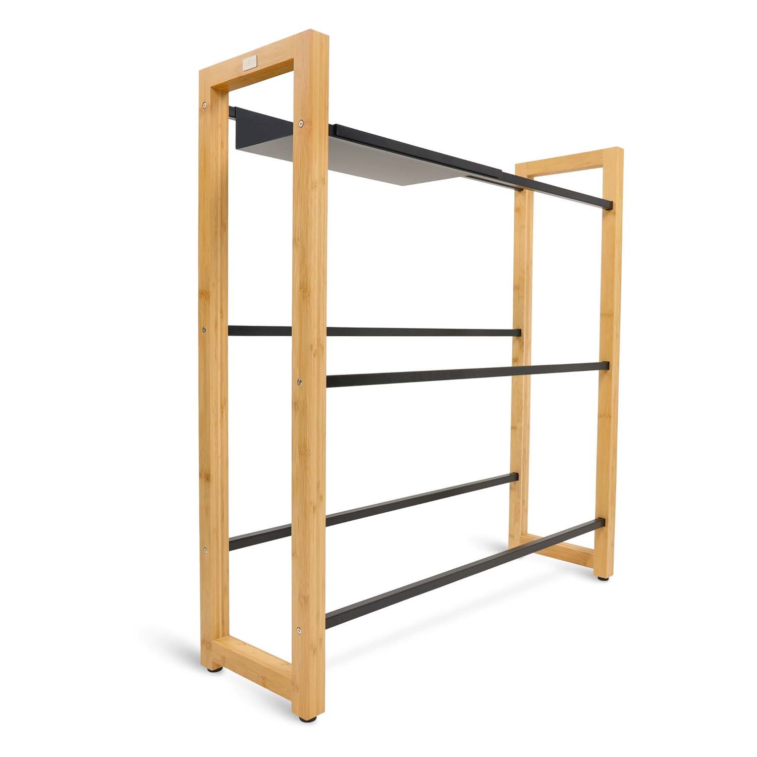 1x Getränkekistenregal inkl. Ablage - Bambus / Schwarz - für bis zu 6 Kisten