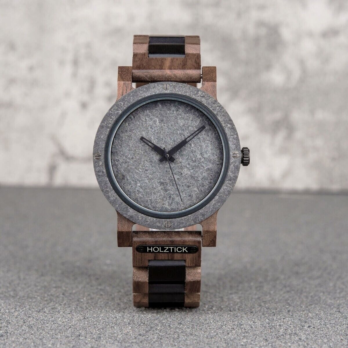 Besondere Merkmale | Männeruhr aus echtem grauen Marmor und Zebranoholz gefertigt |