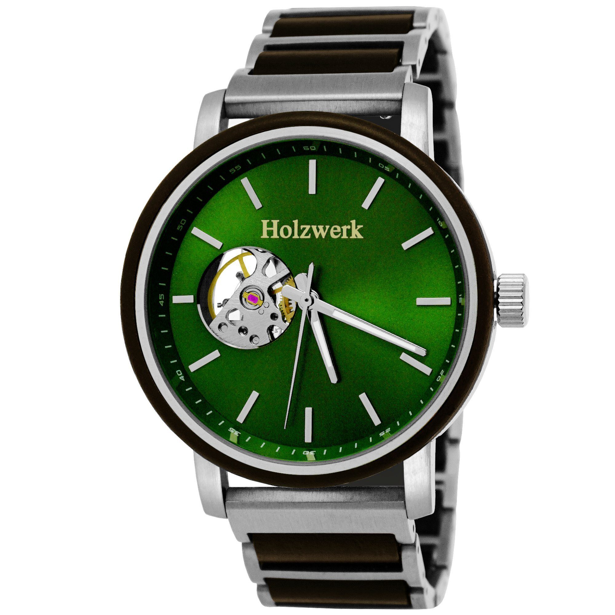 Diese Holzwerk-Automatikuhr ist ein echtes Highlight für jeden Uhrenliebhaber! Das stilvolle Design aus Edelstahl und Holzelementen in modernen Farbkombination verleiht der Uhr eine besondere Note. Das hochwertige mechanische Uhrwerk wird per Hand aufgezogen und sorgt für eine präzise Zeitmessung. Die Kombination aus Holz und Edelstahl verleiht der Uhr ihren einzigartigen Charme und setzt ein Statement an deinem Handgelenk.