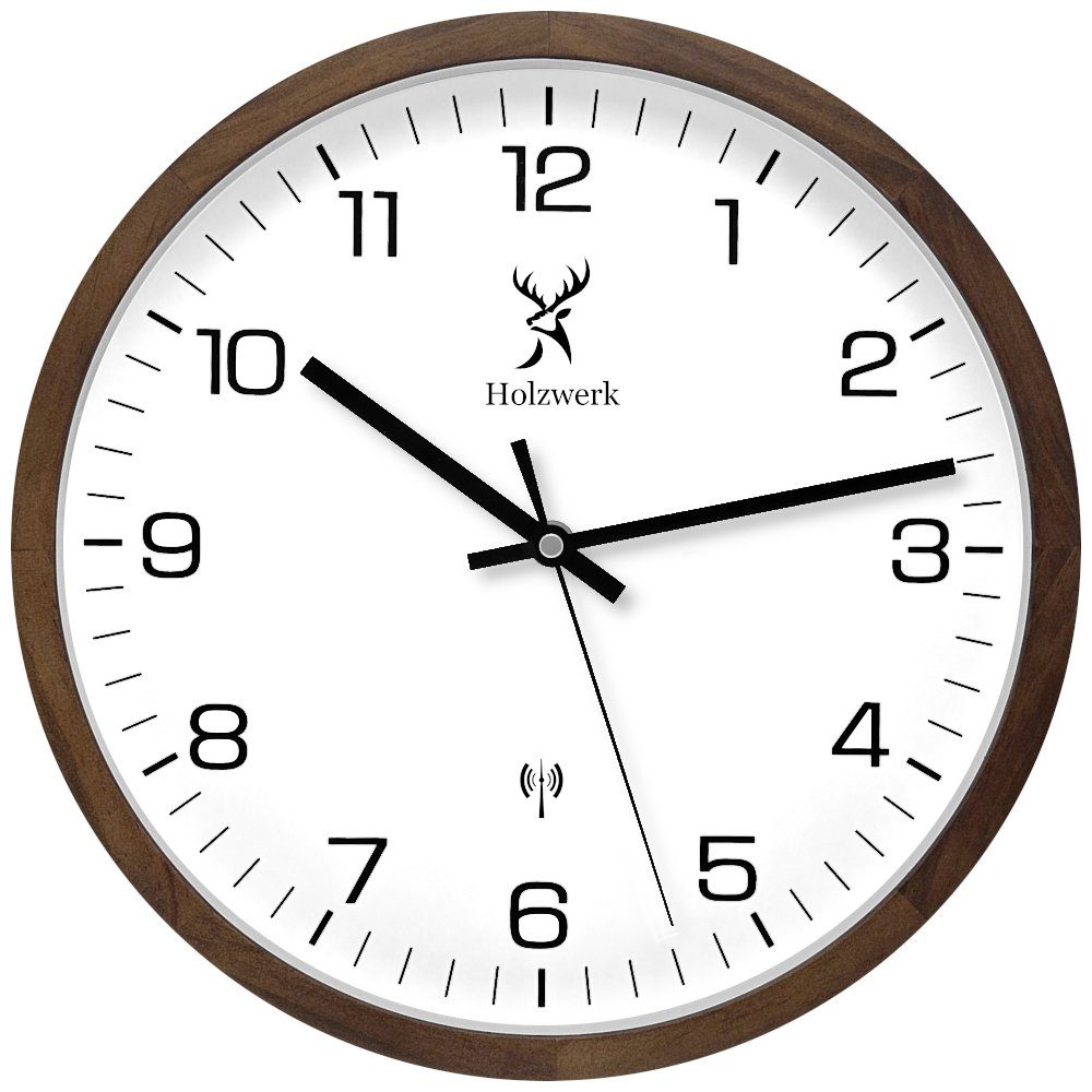 Diese Holzwerk Funk-Wanduhr ist die perfekte Wahl für umweltbewusste Kunden, die auf der Suche nach einem robusten Zeitmesser sind. Hergestellt aus hochwertigem Holz, ist jede Uhr mit einer einzigartigen Maserung versehen, die sie zu einem echten Unikat macht. Diese Wanduhr aus Holz ist nicht nur ein stilvolles Accessoire für jeden Raum, sondern auch eine zeitlose Ergänzung für jedes Zuhause.