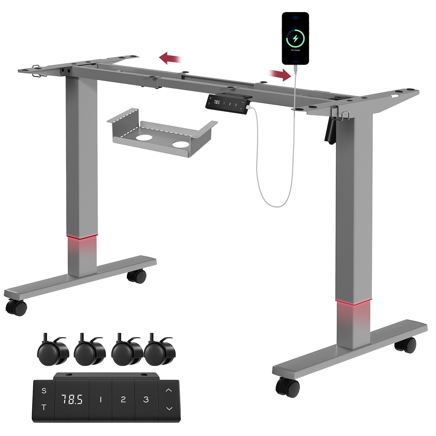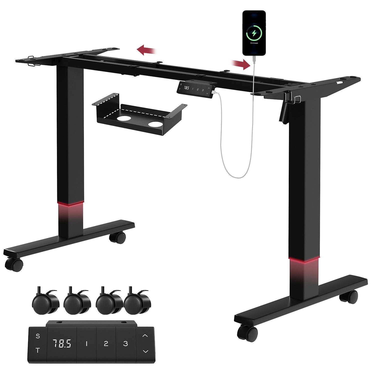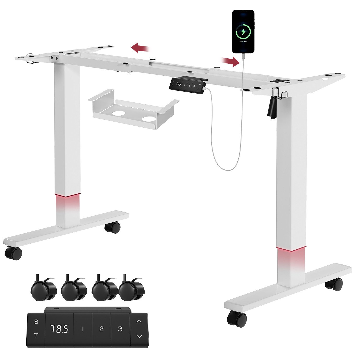 sehr schneller Versand, verständliche Bedienungsanleitung, einfacher Aufbau, auch gut alleine zu schaffen. Mit den Rollen tatsächlich etwas zu hoch, 80 cm Tischoberkante, Tischplattenstärke 3,5 cm. Aber diese waren mir wichtig. Leichte Lösung: Stuhl hoch, Fußstütze drunter - passt. Ich bin sehr zufrieden, gutes Preis/Leistungsverhältnis.