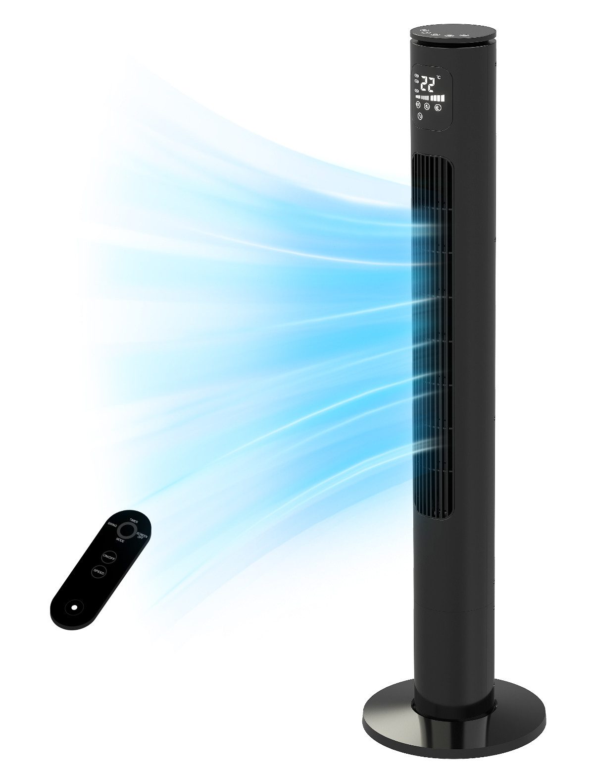 Raumsparend Design: Mit seinem kompakten und schlanken Turmdesign nimmt der Ventilator nur wenig Platz ein. Er passt perfekt in Ecken oder an Wänden, ohne die Raumstruktur zu stören.