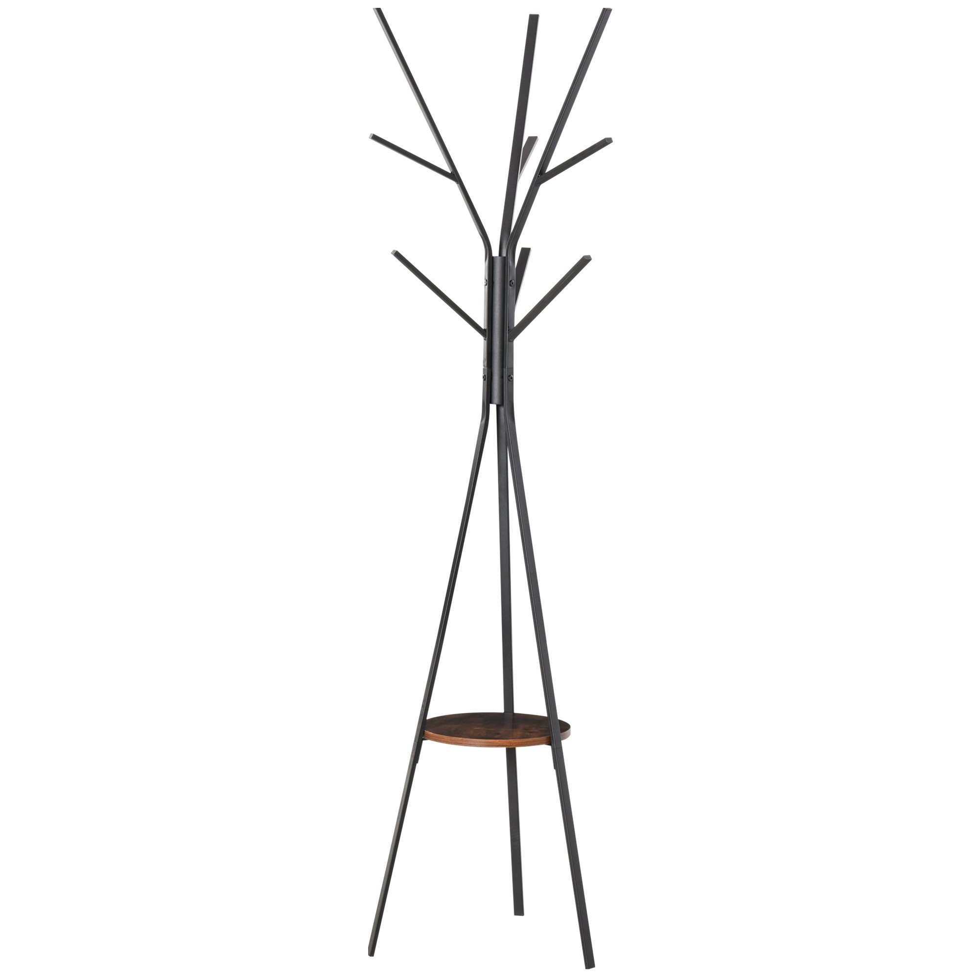 Dieser stilvolle und funktionale Kleiderständer von HOMCOM bietet reichlich Platz für Mäntel, Taschen und Schals, welche an 8 Haken ordentlich aufgehängt werden können. Darüber hinaus verfügt dieser Garderobenständer über eine Ablage zum Aufbewahren von Zubehör. Die Konstruktion aus MDF-Holz und Metall ist langlebig und stabil. Dank dem schönen und modernen Design ist der Kleiderständer das perfekte Möbelstück für jeden Eingangsbereich.