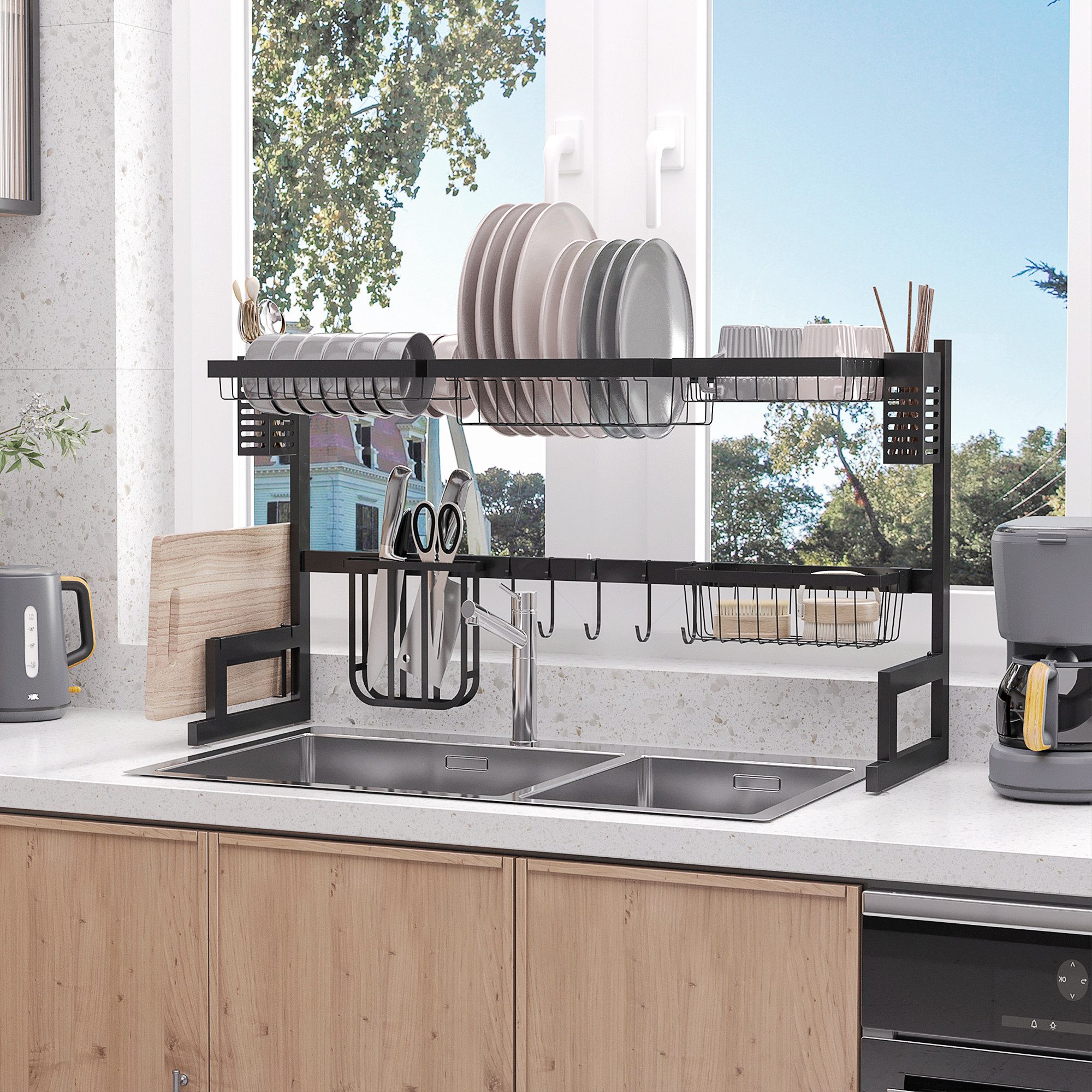 Optimieren Sie das Trocknen mit dem modularen HOMCOM Geschirrkorb: inklusive Schüssel- und Tellerregal, Obstkorb, zwei Besteckhaltern, Spülmittel-, Messerhalter, fünf Haken und einem Schneidebretthalter. Die robuste pulverbeschichtete Stahlkonstruktion hält sicher. Mit Saugfüßen für festen Halt auf nassen Flächen. Beschreibung: