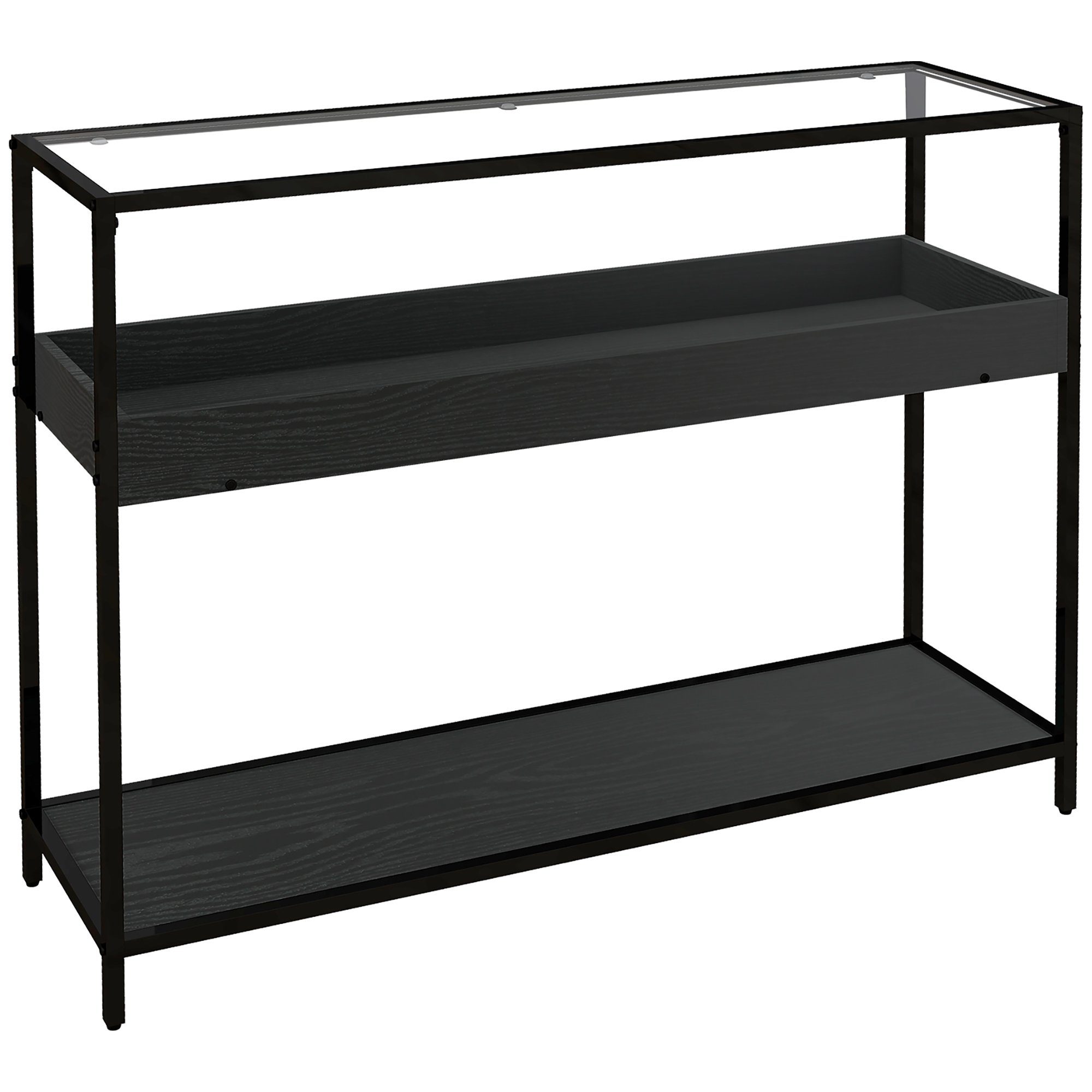 ● 6 mm dicke Glasplatte bietet Platz für Dinge, die Sie ausstellen möchten, wie Vasen, Fotos, etc ● Mittlere Ablage und untere Regale bieten Platz für Hüte, Schals, Aufbewahrungsboxen und mehr ● Das lackierte Stahlgestell ist stabil und für den täglichen Gebrauch geeignet ● Sicherungsgurte auf der Rückseite, die Sie zur Sicherheit an der Wand befestigen können ● Verstellbare Fußstützen halten den Tisch auch auf unebenen Böden stabil ● Einfache Montage erforderlich
