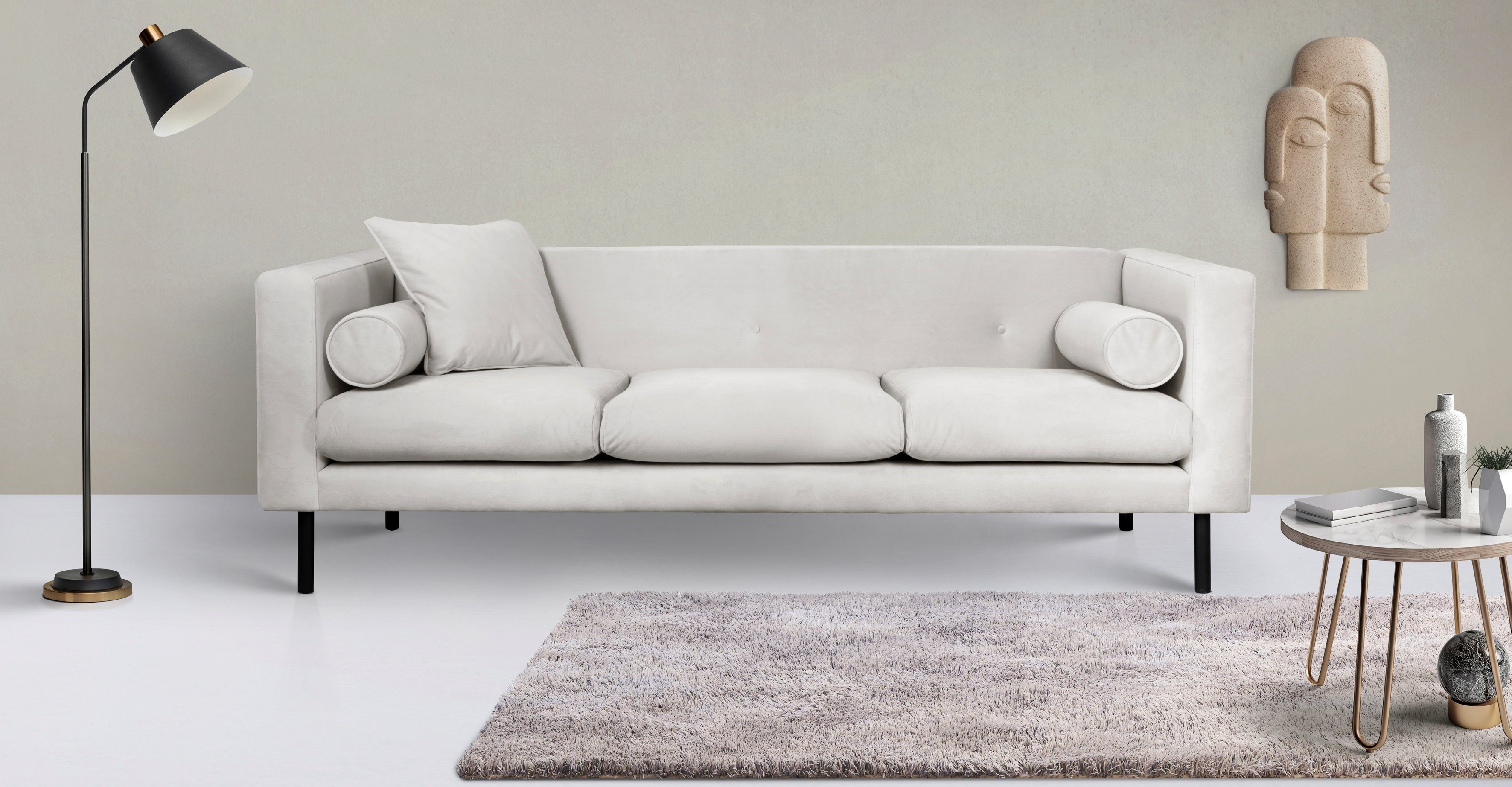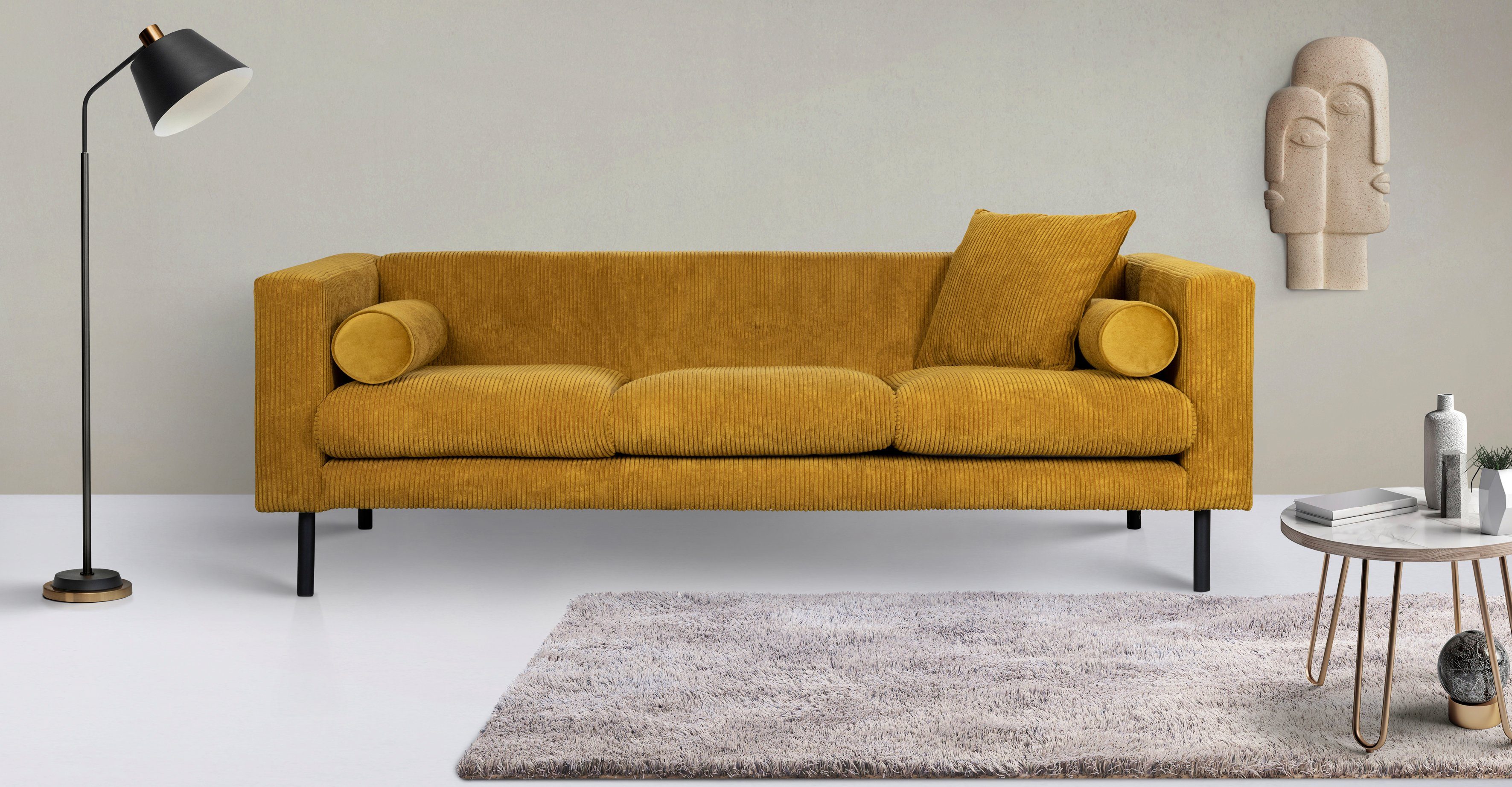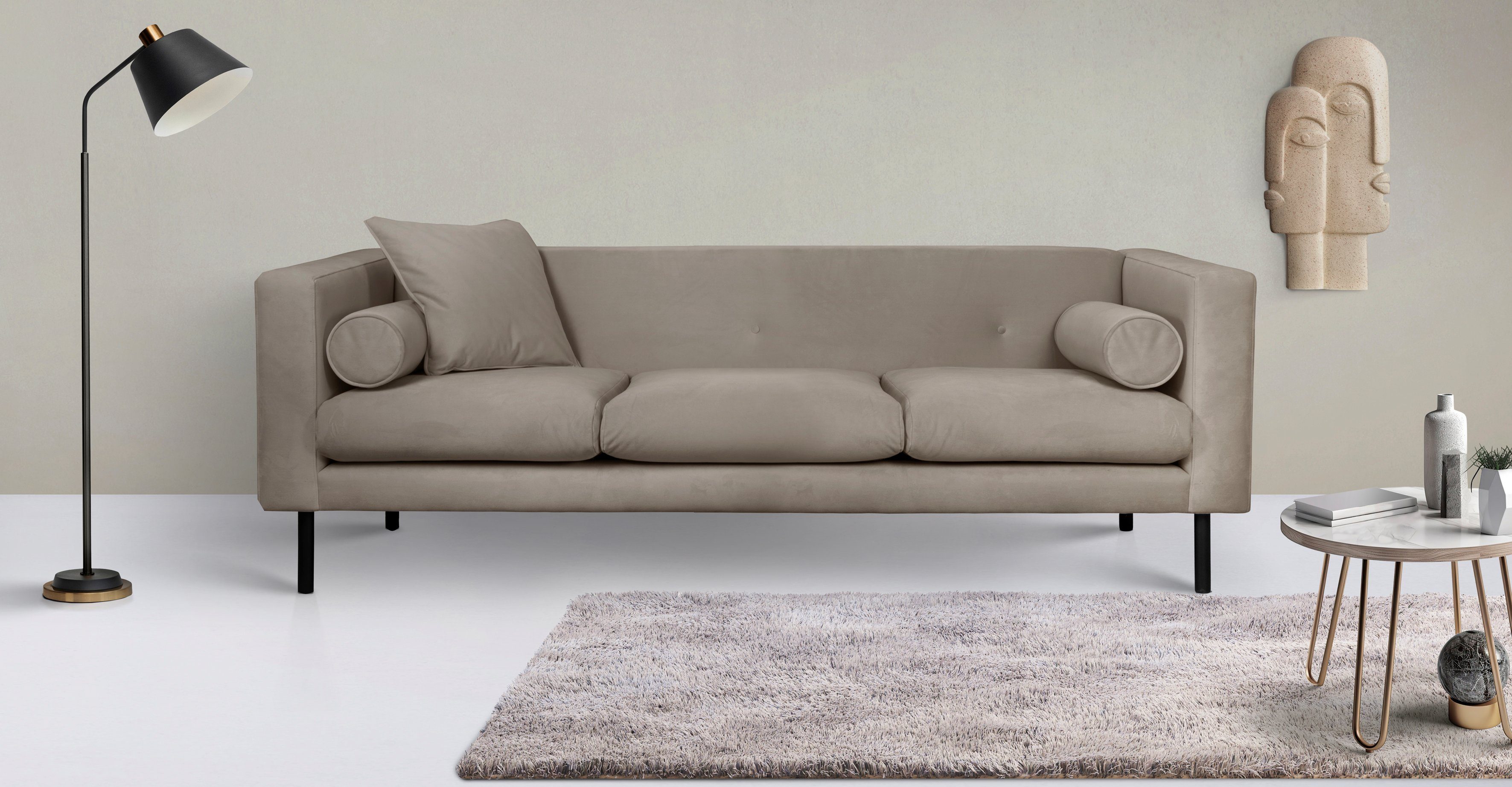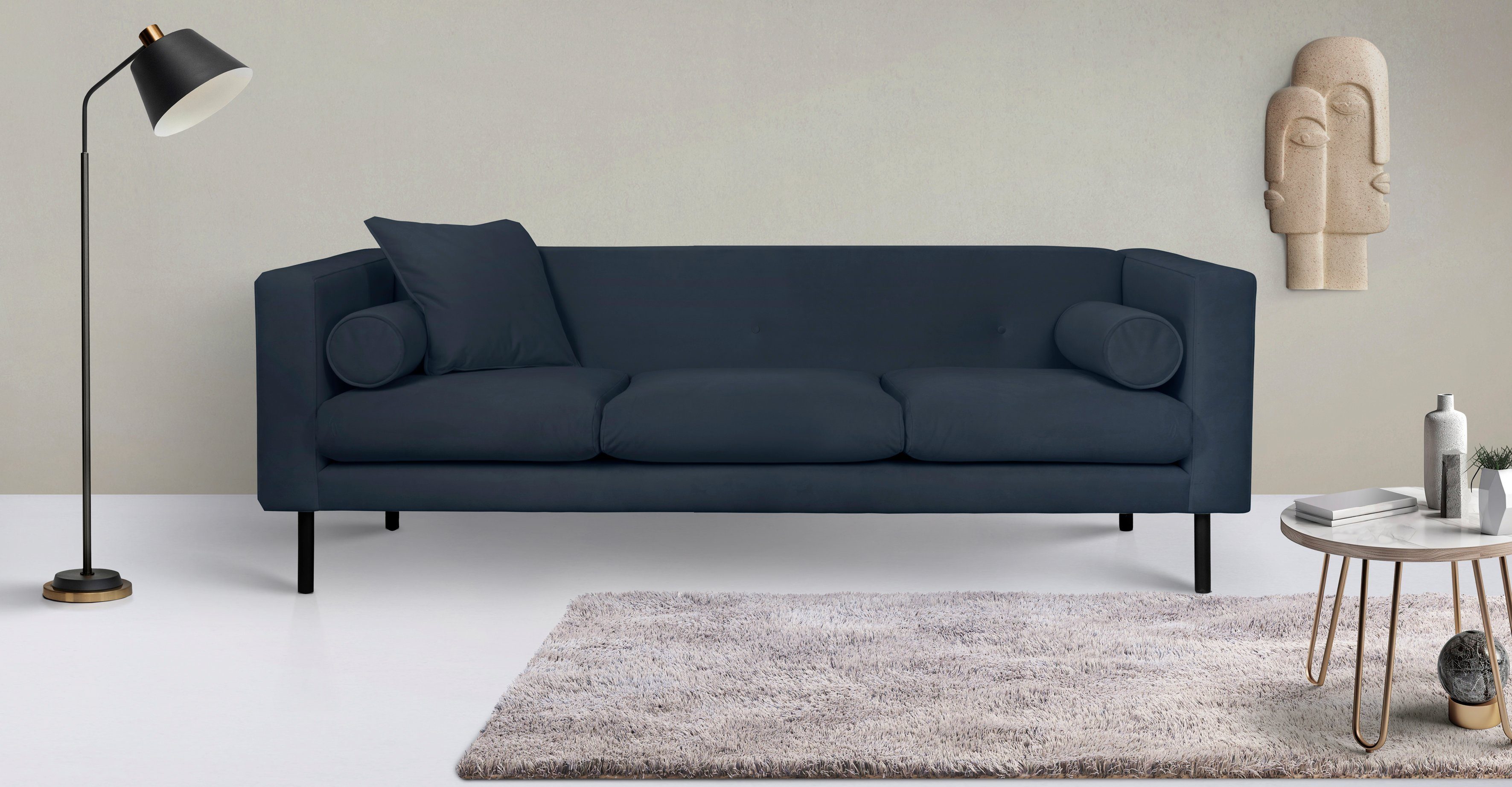 Ob fürs Gästezimmer oder Wohnzimmer — dieser bequeme 3-Sitzer »Lillibeth Designsofa mit Wellenunterfederung, Maße B/T/H: 218/74/83 cm« von Home affaire lässt dir mit seiner kompakten Размер viel Gestaltungsspielraum und bietet dennoch ausreichend Platz für dich und deinen Besuch. Belastbar ist dein neues Möbelstück bis zu 120 Kilogramm. Die schwarzen Füße aus Metall benötigen nahezu keine Pflege**, denn Rückstände, Schmutz oder Staub lassen sich ohne großen Aufwand mit einem feuchten Tuch abwischen. Aus Liebe zum Detail wurde dieses Modell von Hand angefertigt.