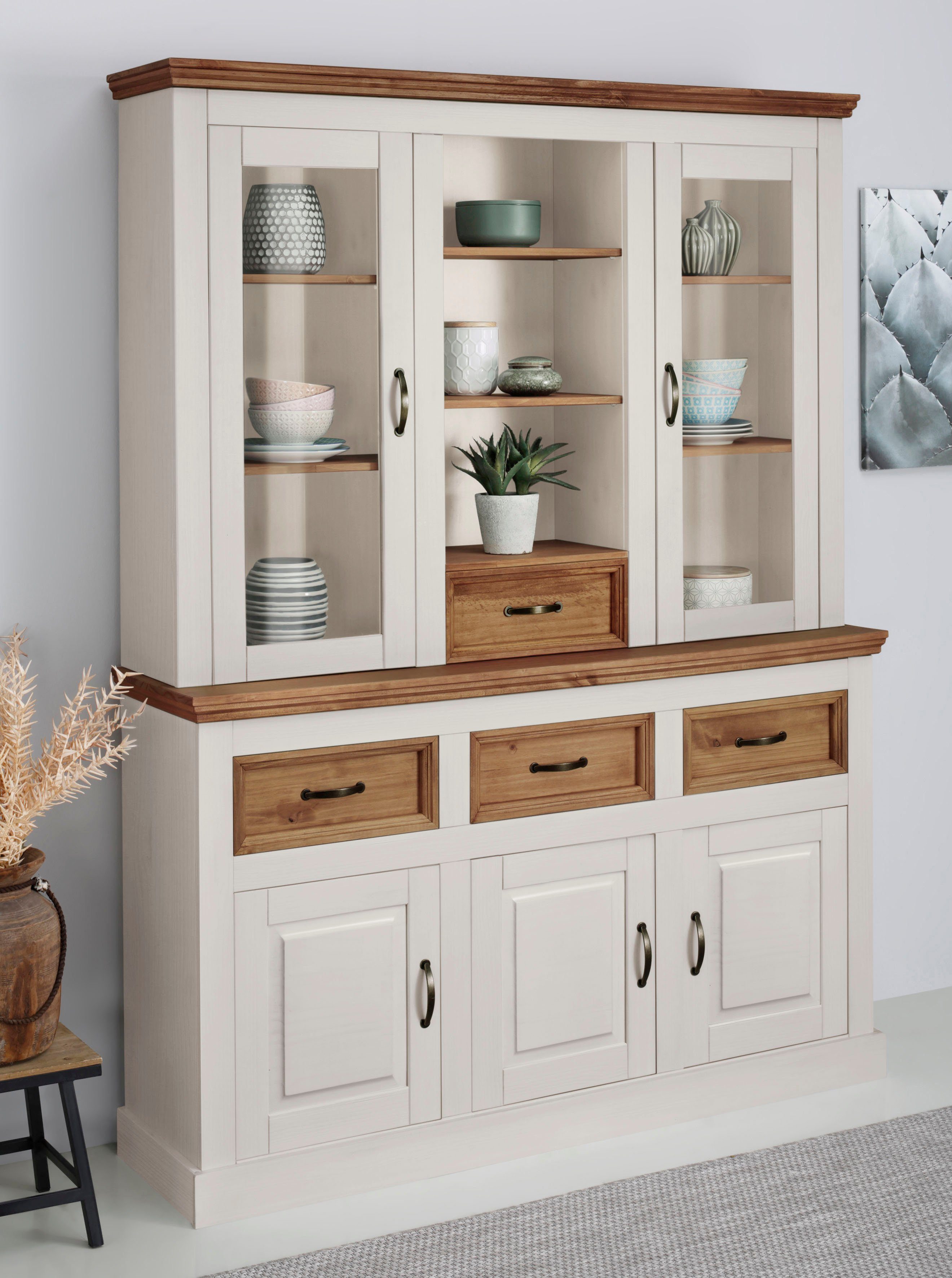 Das Buffet versprüht eine ländliche Romantik. Zum Beispiel in Kombination mit Möbeln aus Holz oder Rattan wird das heimelige Ambiente stilecht ergänzt. Dazu können beispielsweise Fundstücke vom Flohmarkt und Antiquitäten den rustikalen Look ergänzen. Er ist Bestandteil der Serie Selma. Von dieser kannst du dich beim Einrichten inspirieren lassen.