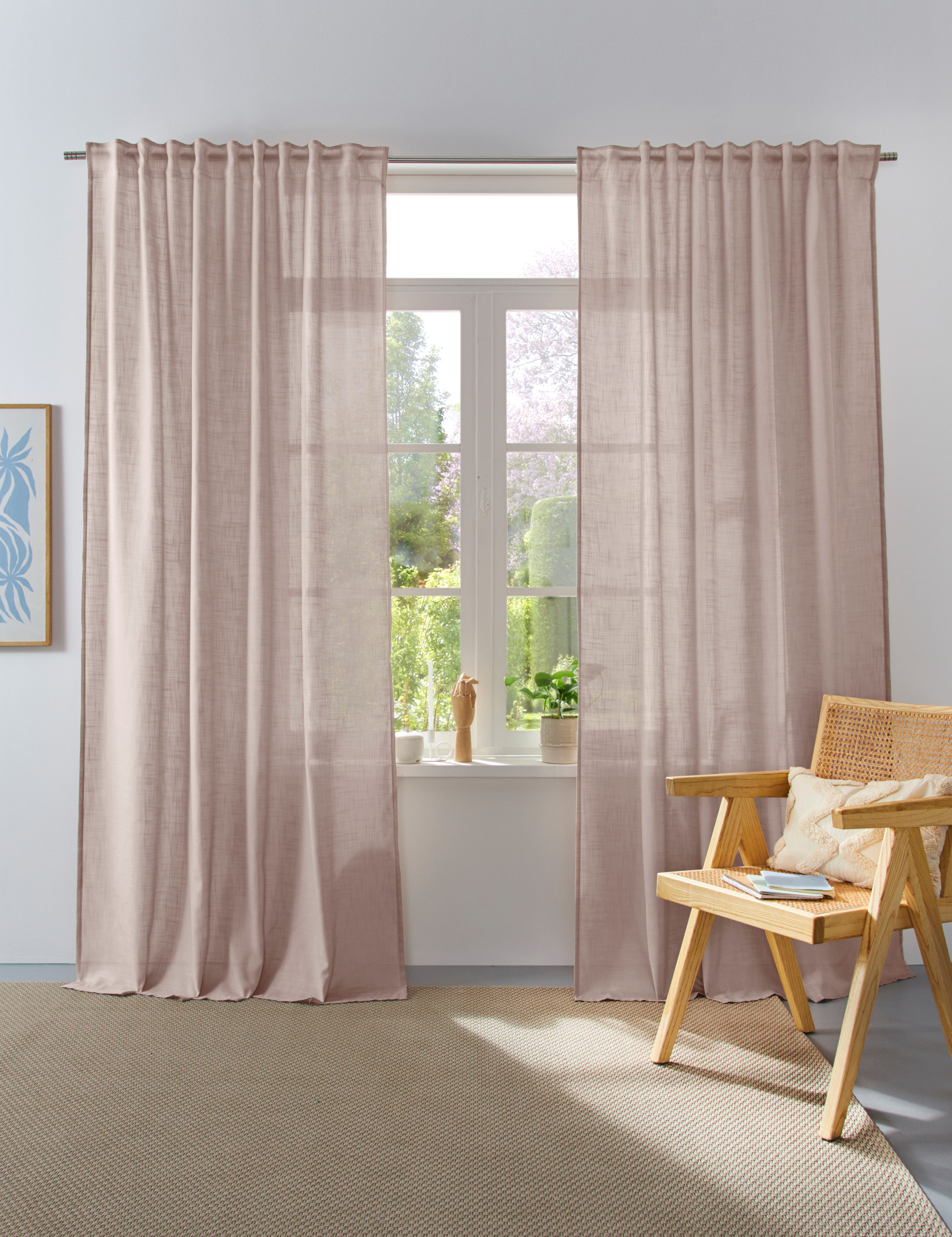 Hinweis Aufhängung | Die angegebenen Maße sind Stoffmaße. Montageart 1: Aufhängung mittels Gardinenröllchen (nicht im Lieferumfang enthalten) in der Gardinenschiene. Montageart 2: Aufhängung mittels verdeckter Schlaufen an der Gardinenstange. |