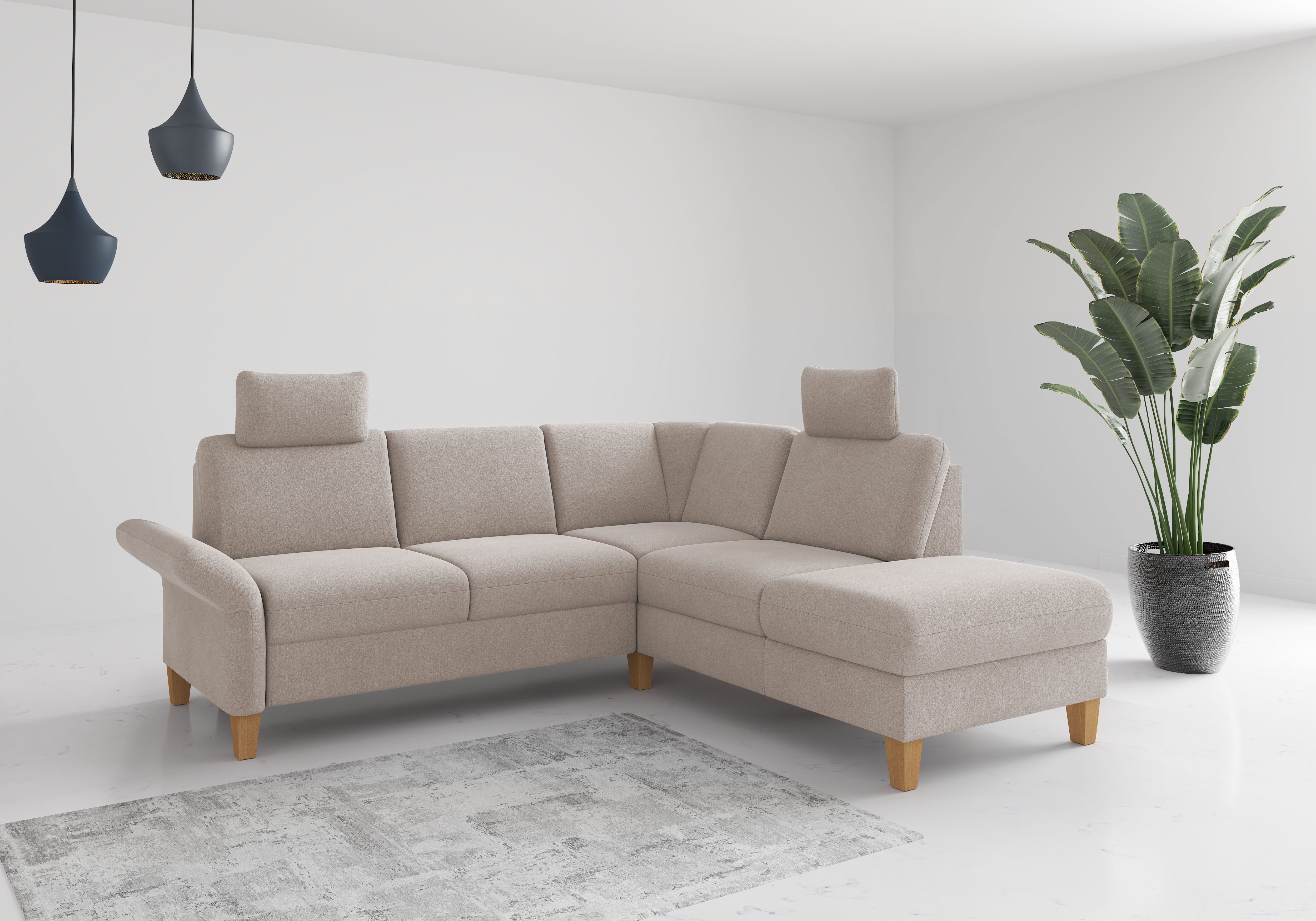 Eine dauerhaft elastische und komfortable Sitzfläche — das bekommst du bei diesem Ecksofa »Rochelle, L-Form« von Home affaire, das mit einer hochwertigen Wellenunterfederung ausgestattet ist. Beim Ecksofa befindet sich die Ottomane, von vorne betrachtet, auf der rechten Seite. Die maximale Belastbarkeit liegt bei einem Gewicht von 440 Kilogramm. Die Buche eichefarbigen Füße aus Holz überzeugen mit der einzigartigen Optik. Aus Liebe zum Detail wurde dieses Modell von Hand angefertigt.