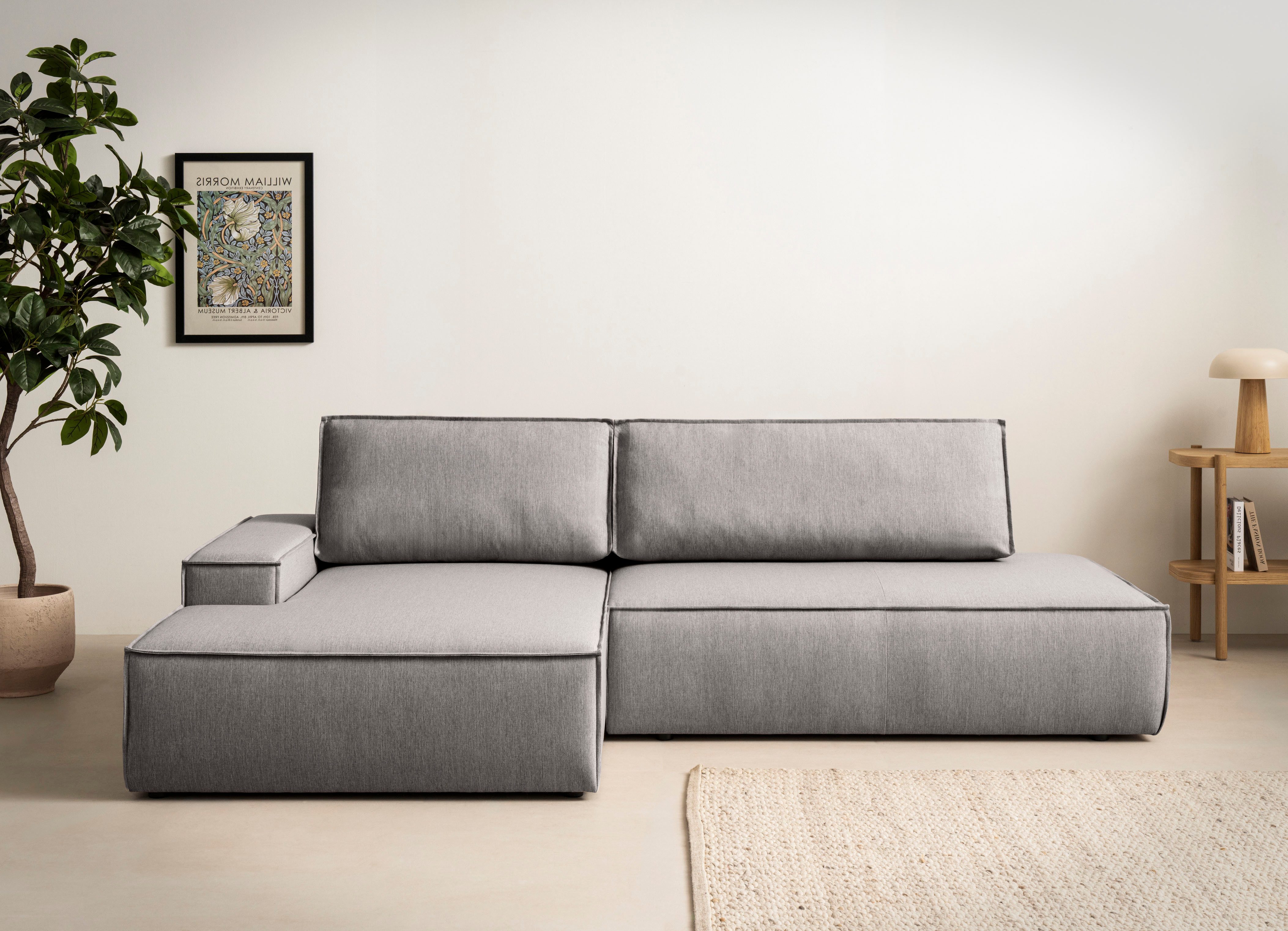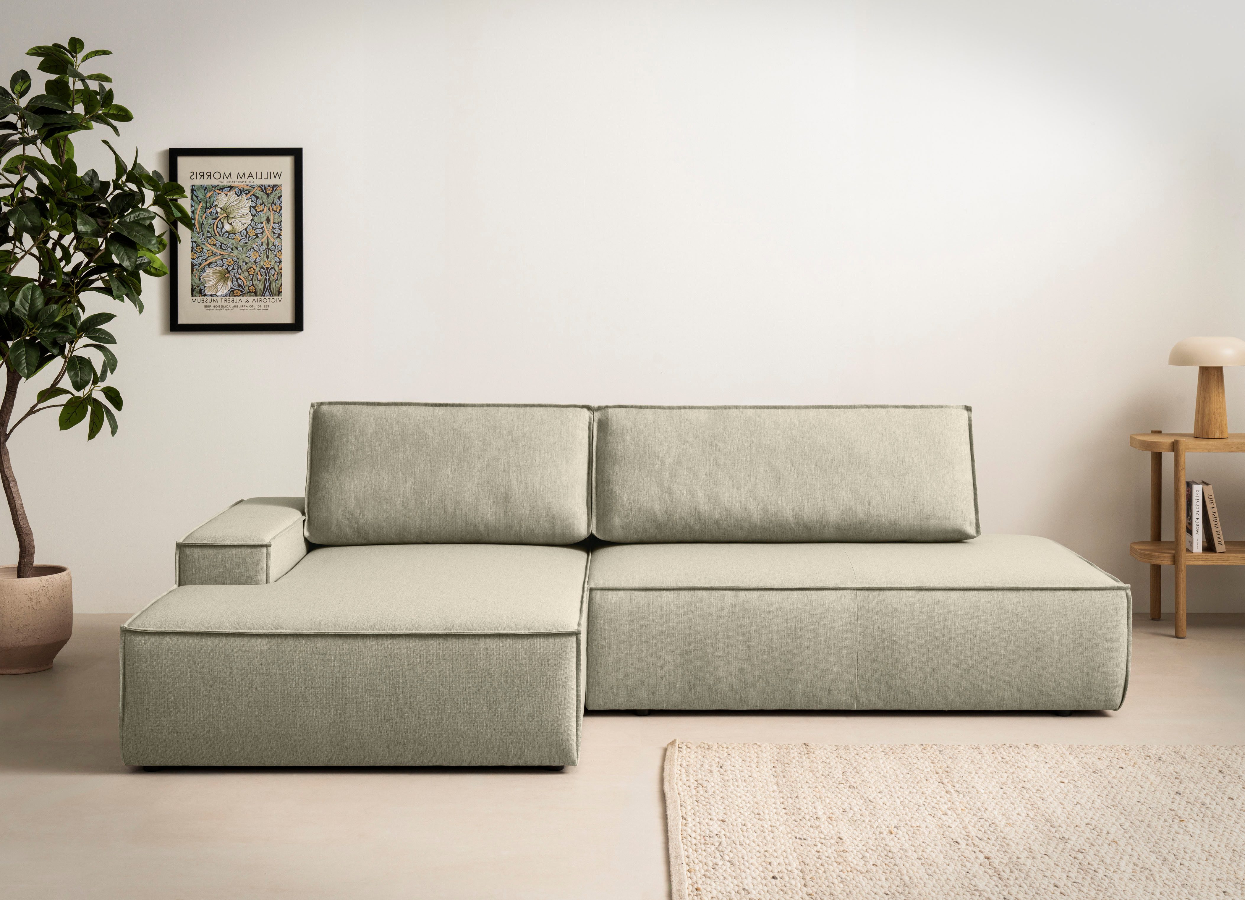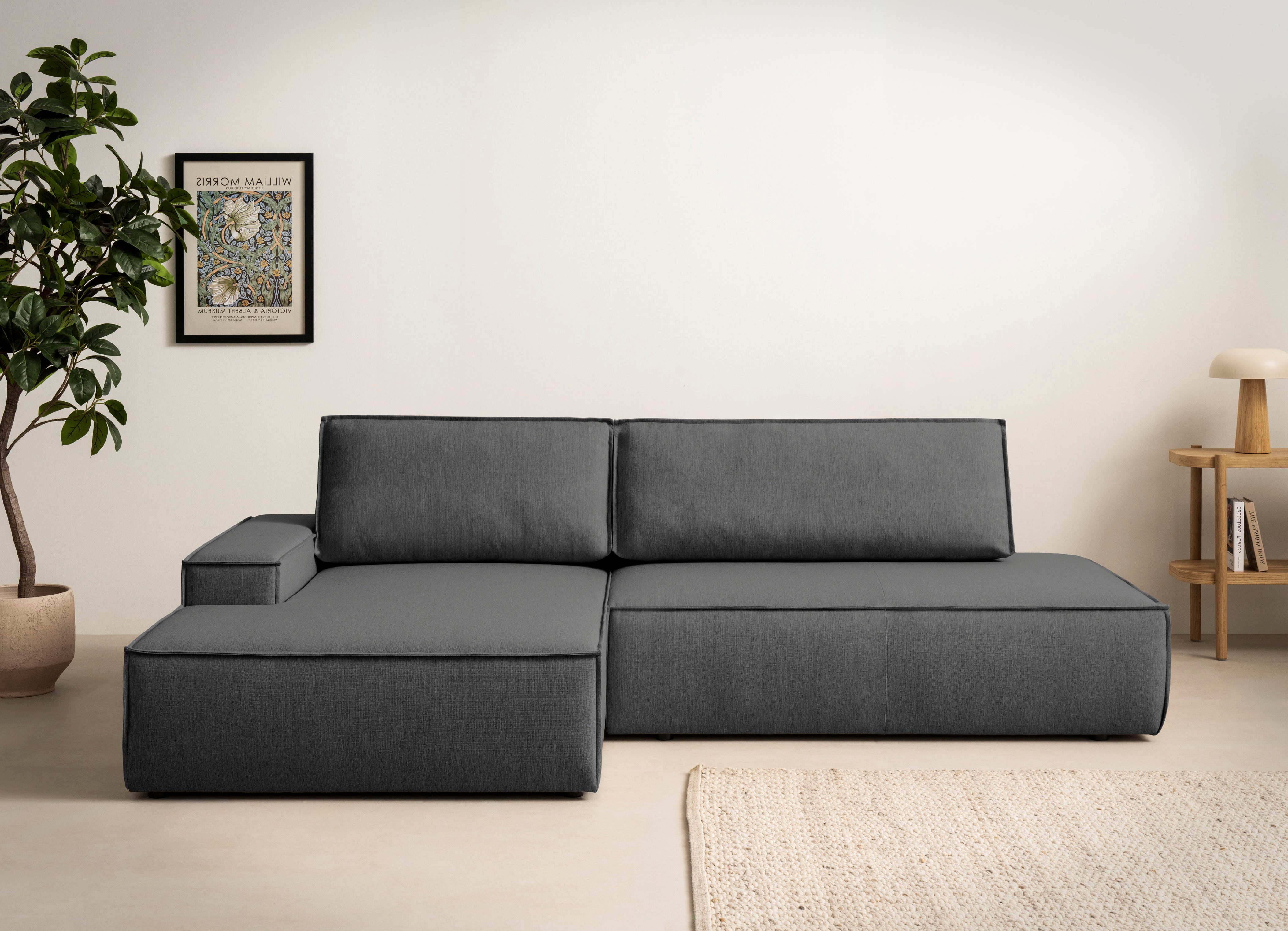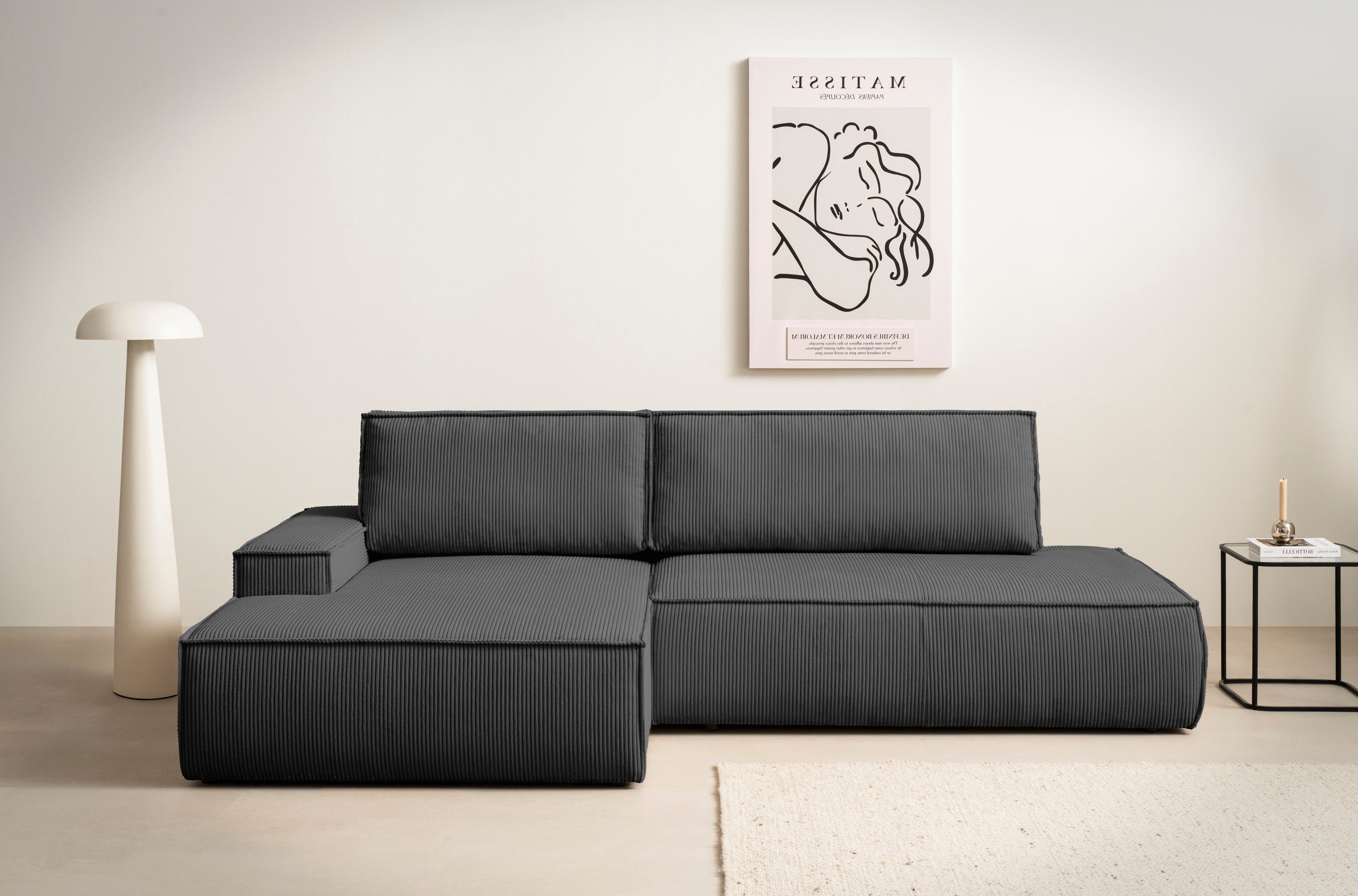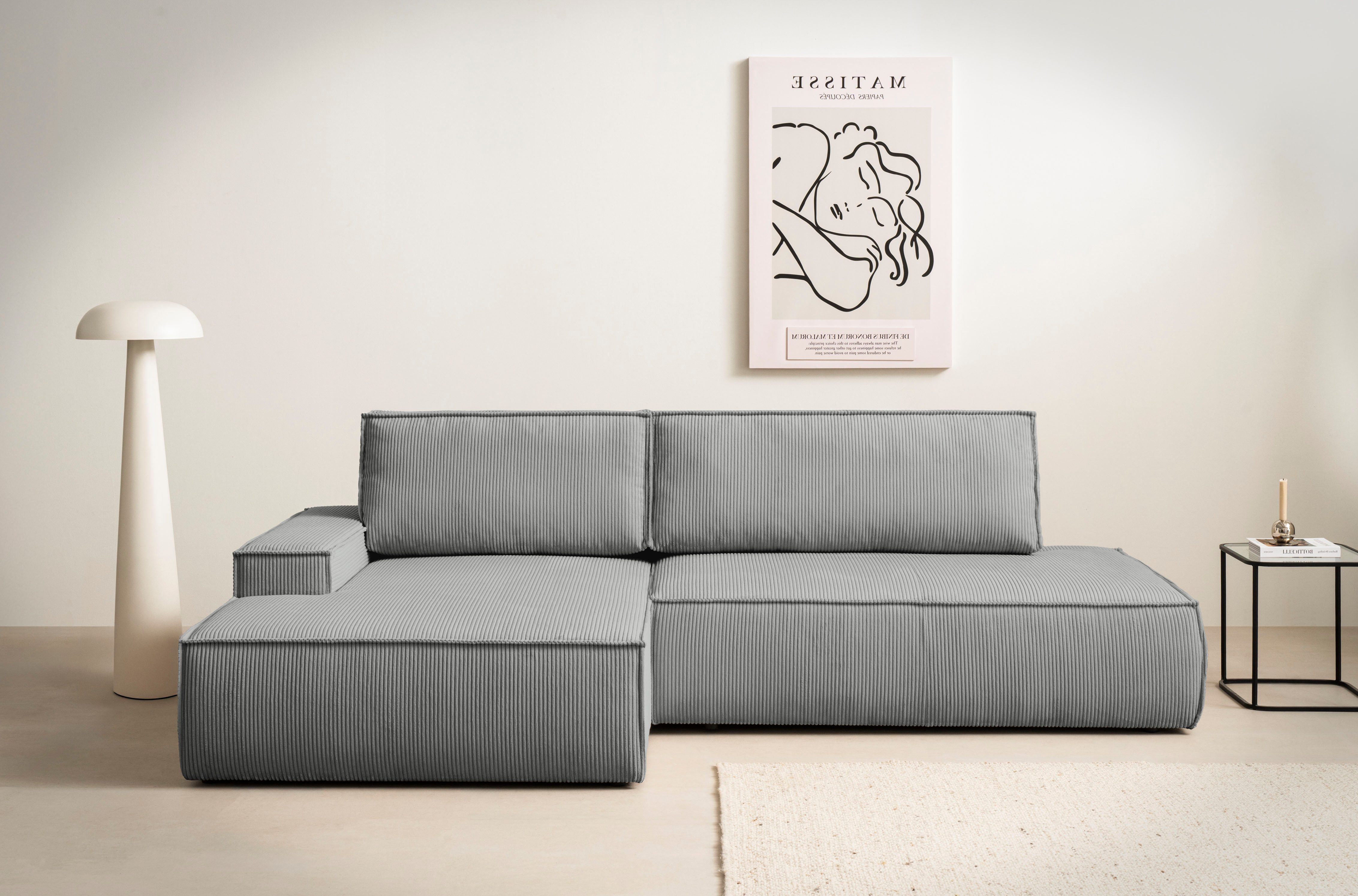 Sitzplatzmangel war gestern — das Ecksofa »SHERWOOD, Schlafsofa in L-Form offen (275cm), Cord, Leinenoptik« von Home affaire.