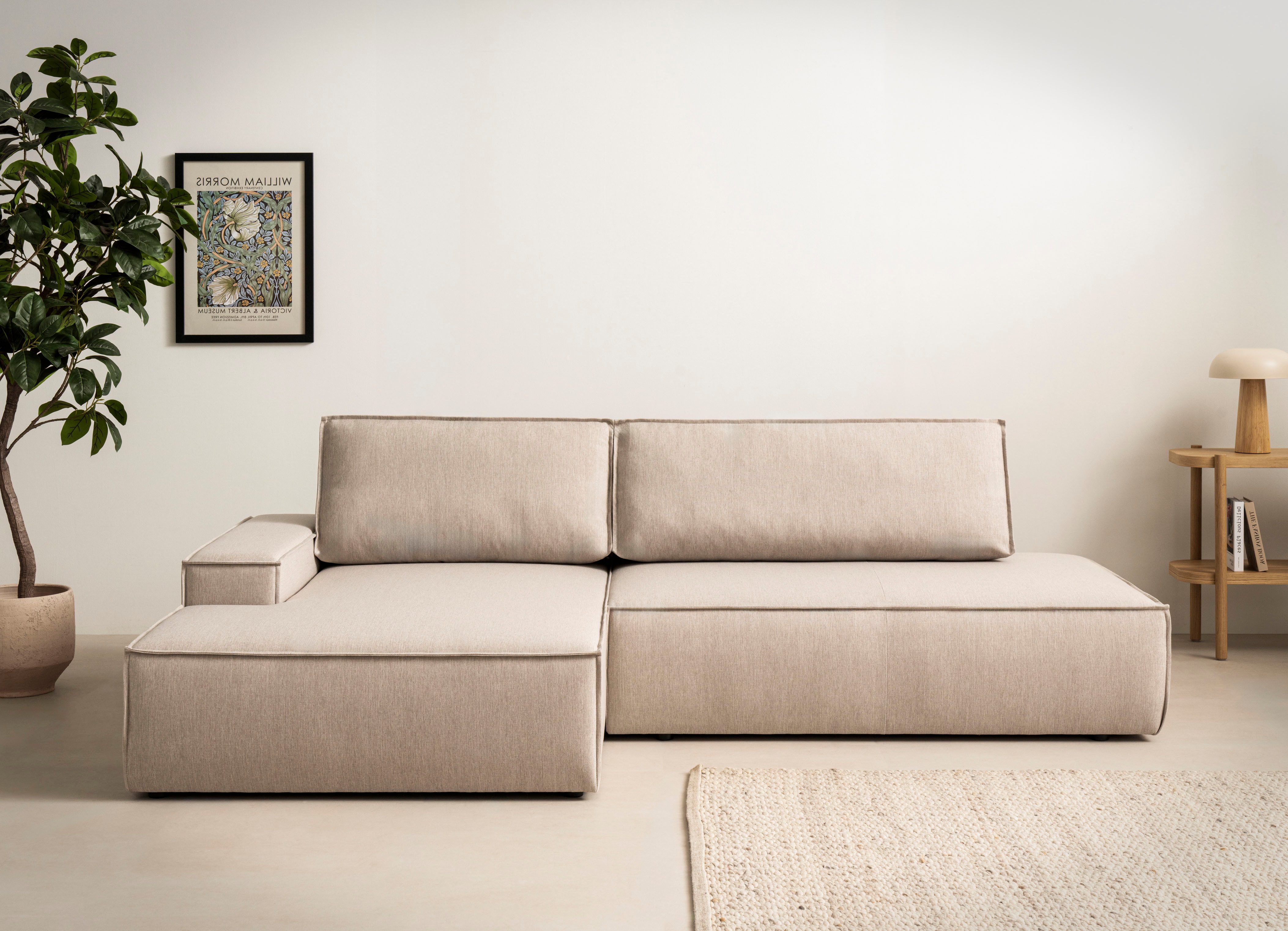 Dieses Ecksofa »SHERWOOD, Schlafsofa in L-Form offen (275cm), Cord, Leinenoptik« von Home affaire bietet dir dank der Wellenunterfederung hohen Sitzkomfort und Tragfähigkeit. Wovon du auch profitierst, ist das passende Rückenkissen, das das Sofa noch komfortabler macht. Von vorne betrachtet ist die Recamiere nach links ausgerichtet. Die maximale Belastbarkeit liegt bei einem Gewicht von 350 Kilogramm. Die schwarzen Füße wurden aus Kunststoff gefertigt und sind daher temperatur- und formbeständig.