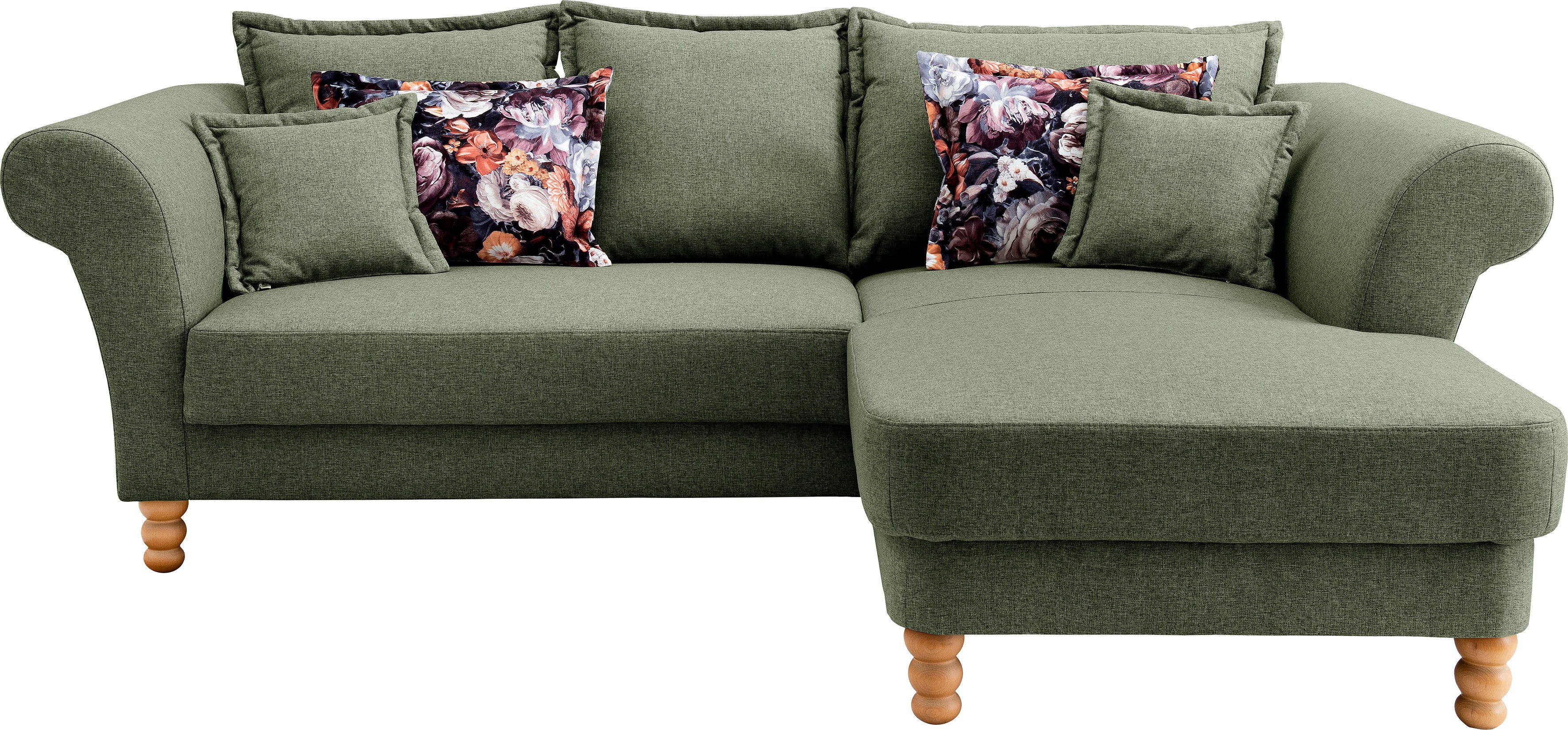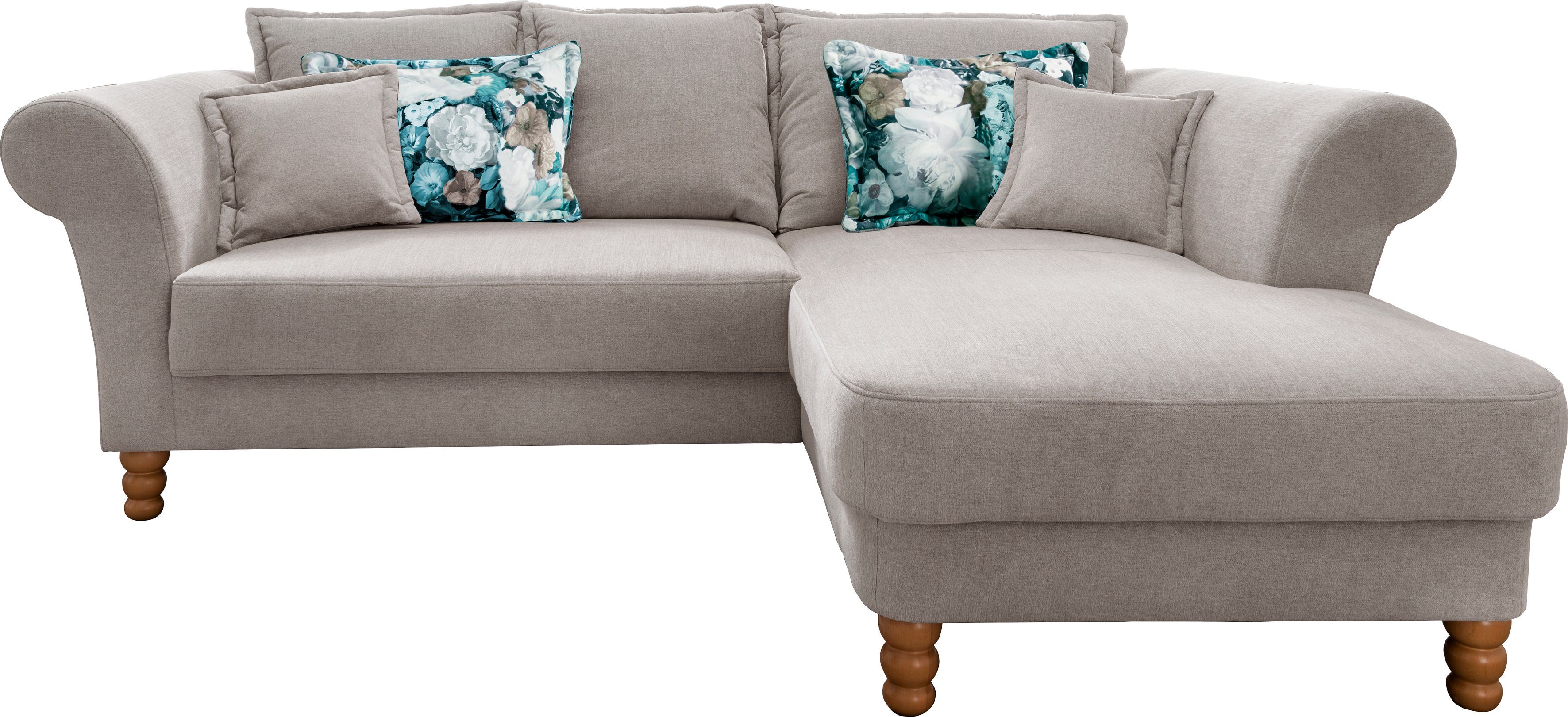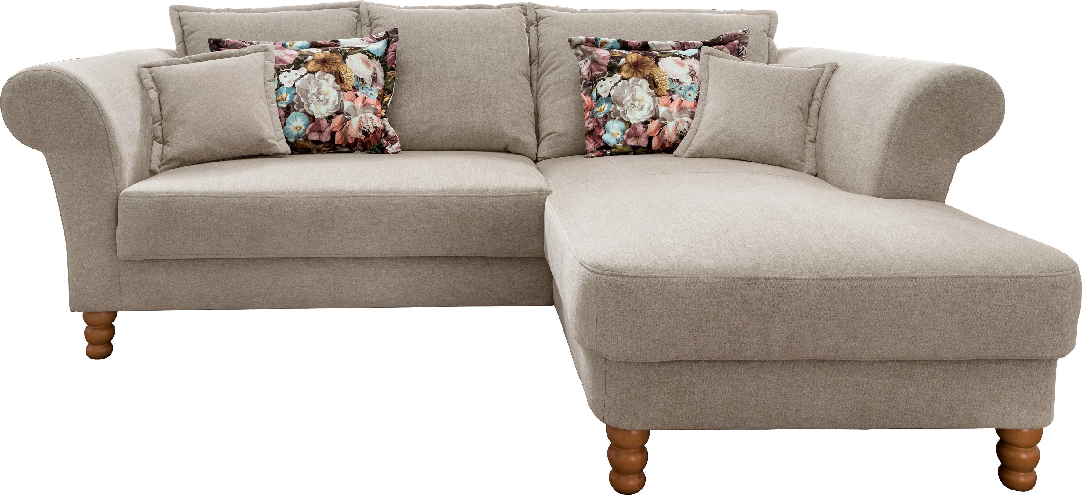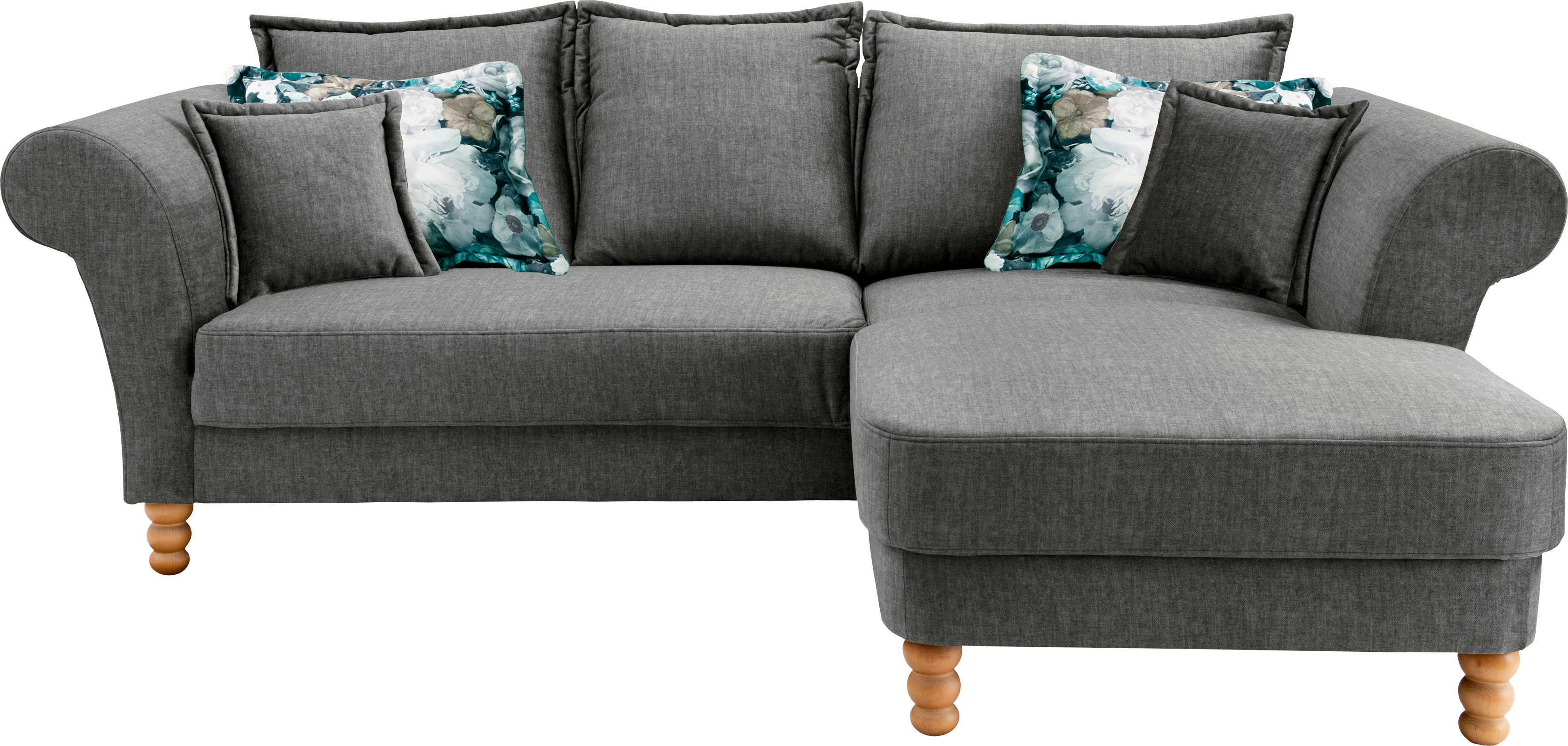 Hohen Sitzkomfort und eine gute Luftzirkulation bietet dir dieses Ecksofa »Tassilo Mega Polsterecke mit Kaltschaum im Sitz, bequem, L-Form« von Home affaire dank der Kaltschaumpolsterung. Wovon du auch profitierst, sind die passenden Zierkissen, die das Sofa noch komfortabler machen. Beim Ecksofa befindet sich die Recamiere, von vorne betrachtet, auf der rechten Seite. Bei etwa 120 Kilogramm liegt die maximale Belastbarkeit. Des Strukturstoffs wegen erhält der Bezug durch kräftige, miteinander verwobene Faserstränge, seine charakteristische Oberfläche und punktet mit seiner hautfreundlichen und pflegeleichten Eigenschaft.