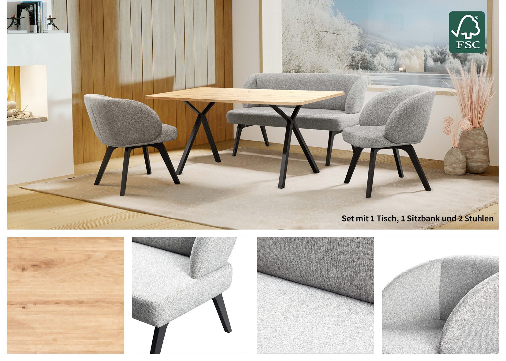(Set, 4-tlg., 4er), Esszimmer Sitzgruppe, Tisch, Stühle und Bank gepolstert, Nosagfederung