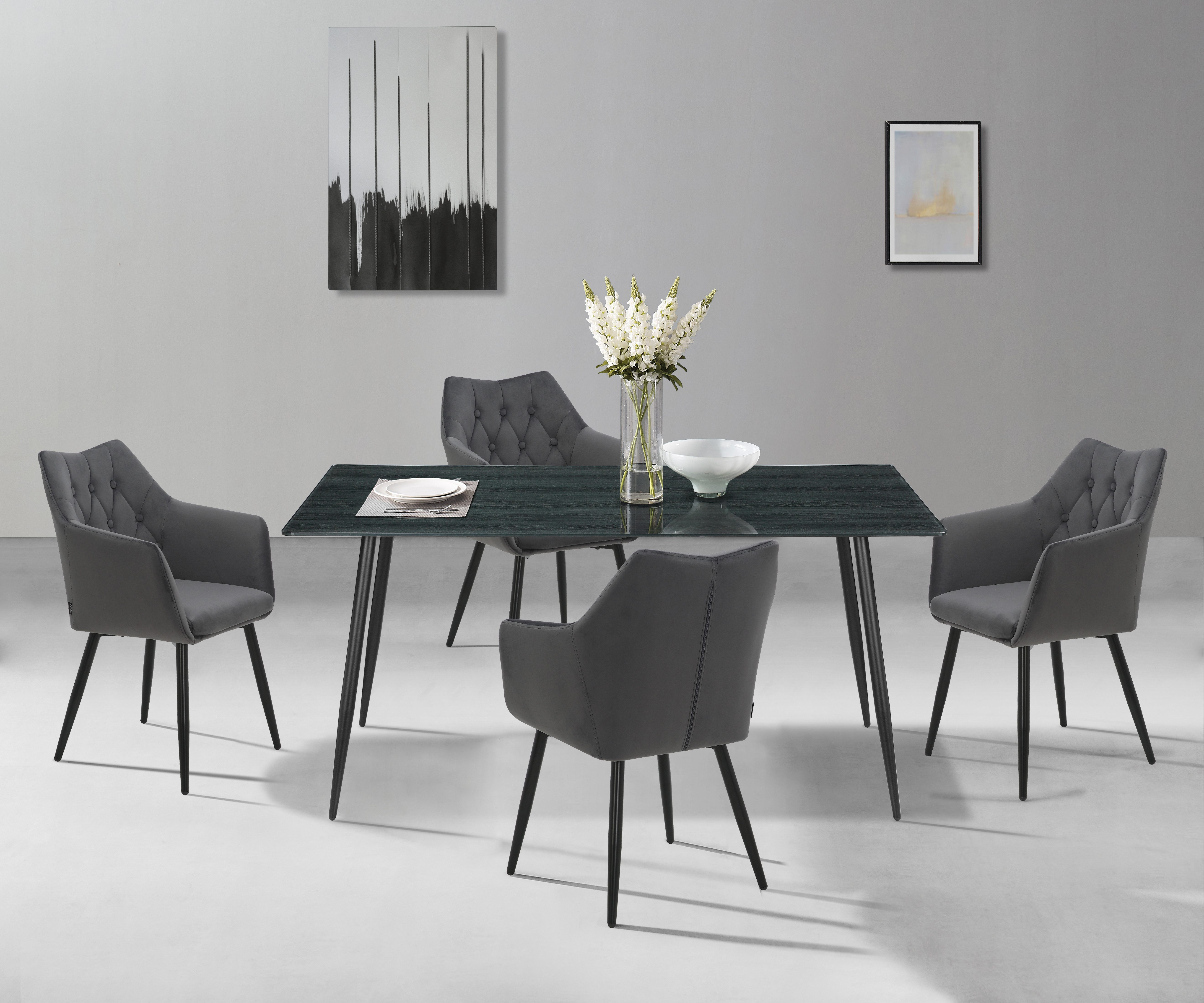 Der schimmernde Bezug aus Samt sieht edel aus und fühlt sich beim Sitzen besonders weich an. Wie du die Stühle sauber hältst, zeigen dir die Pflegehinweise auf dem beiliegenden Produkt- und Materialpass.