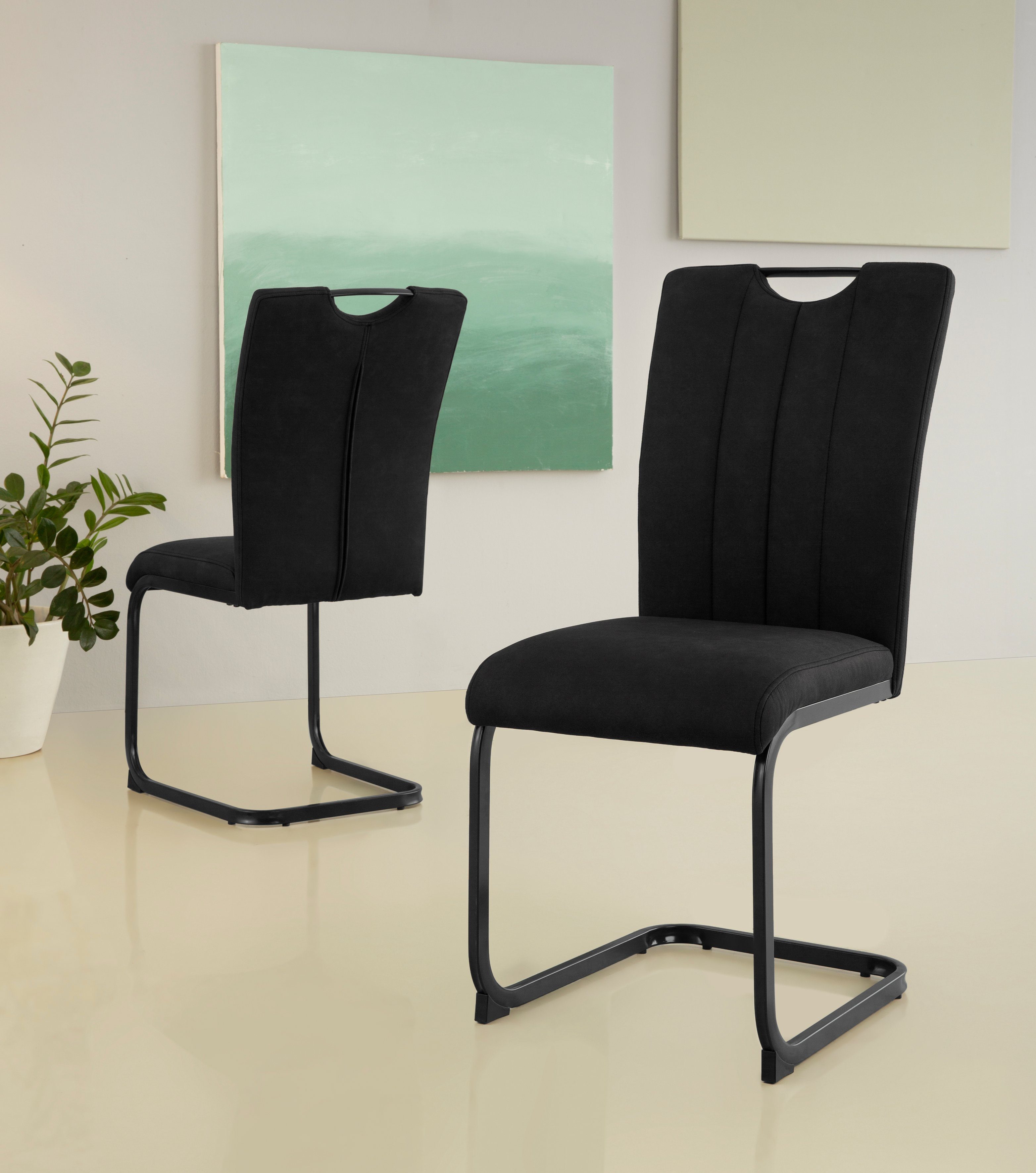 Dank der Federwirkung sind diese Freischwinger »Napoli« von Home affaire nach mehreren Stunden genauso komfortabel wie in der ersten. Auch wenn du länger am Tisch sitzt, bleibt er bequem, denn sowohl die Sitzfläche als auch die Rückenlehne sind angenehm gepolstert. Bei etwa 130 Kilogramm liegt die maximale Belastbarkeit.
