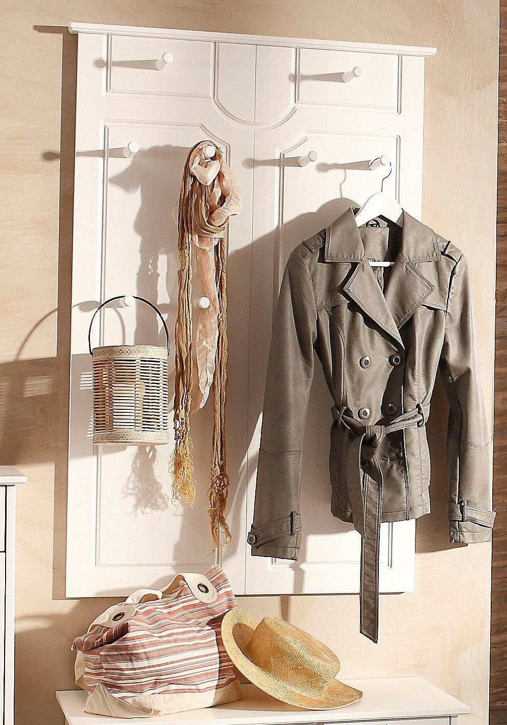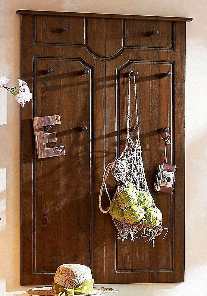 Wissenswertes | Garderobenpaneel »Klera«. Dieses tolle Garderobenpaneel im Landhaus-Stil bietet Ihnen und Ihren Gästen einen schönen Empfang. Ein besonderes Detail sind die dekorativen Fräsungen. Die Wandgarderobe ist gefertigt aus FSC®-zertifizierter, massiver Kiefer, wahlweise in Natur gebeizt und geölt, dunkelbraun gebeizt und lackiert oder weiß gebeizt und lackiert. Das Paneel ist geeignet zur Wandmontage. Die 10 Kleiderhaken aus Holz bieten ausreichend Platz für Ihre Garderobe. Außenmaße (B/T/H): 81/5/122 cm. Artikeldetails: