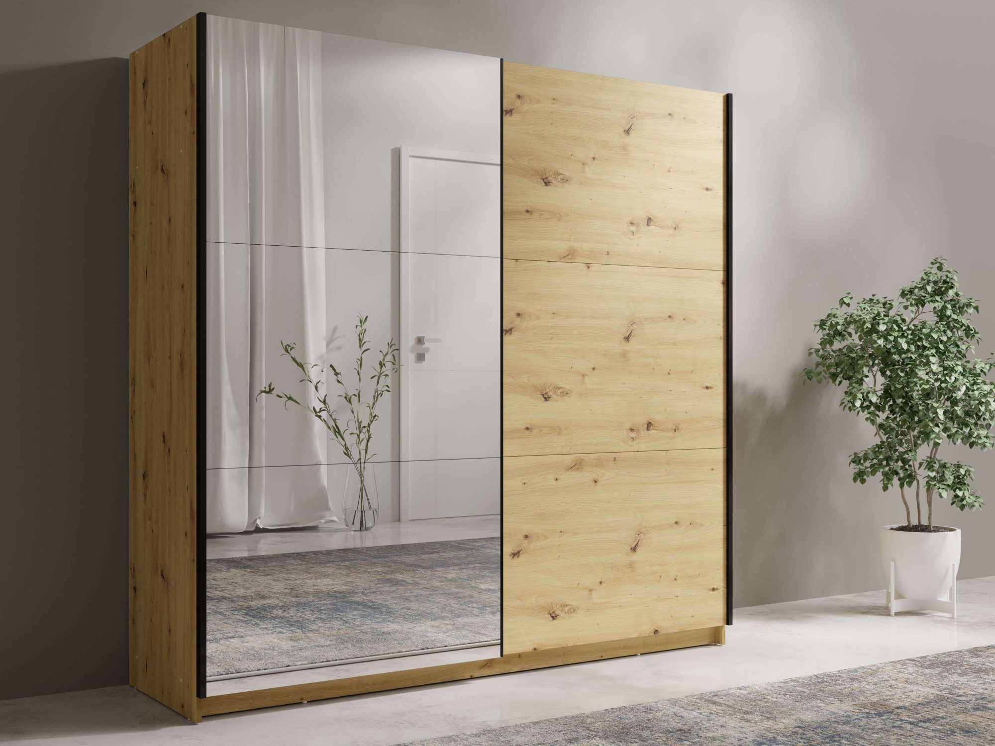 Aus Melamin gefertigt, hat der Schrank eine besonders harte Oberfläche und ist beständig gegen Kratzer. Die modernen Griffleisten aus Aluminium sind langlebig und unterstreichen den Stil. Der Schrank steht auf Gleitern aus Kunststoff. Sie sorgen dafür, dass der Boden nicht zerkratzt wird. Hergestellt wurde das Produkt in Polen.