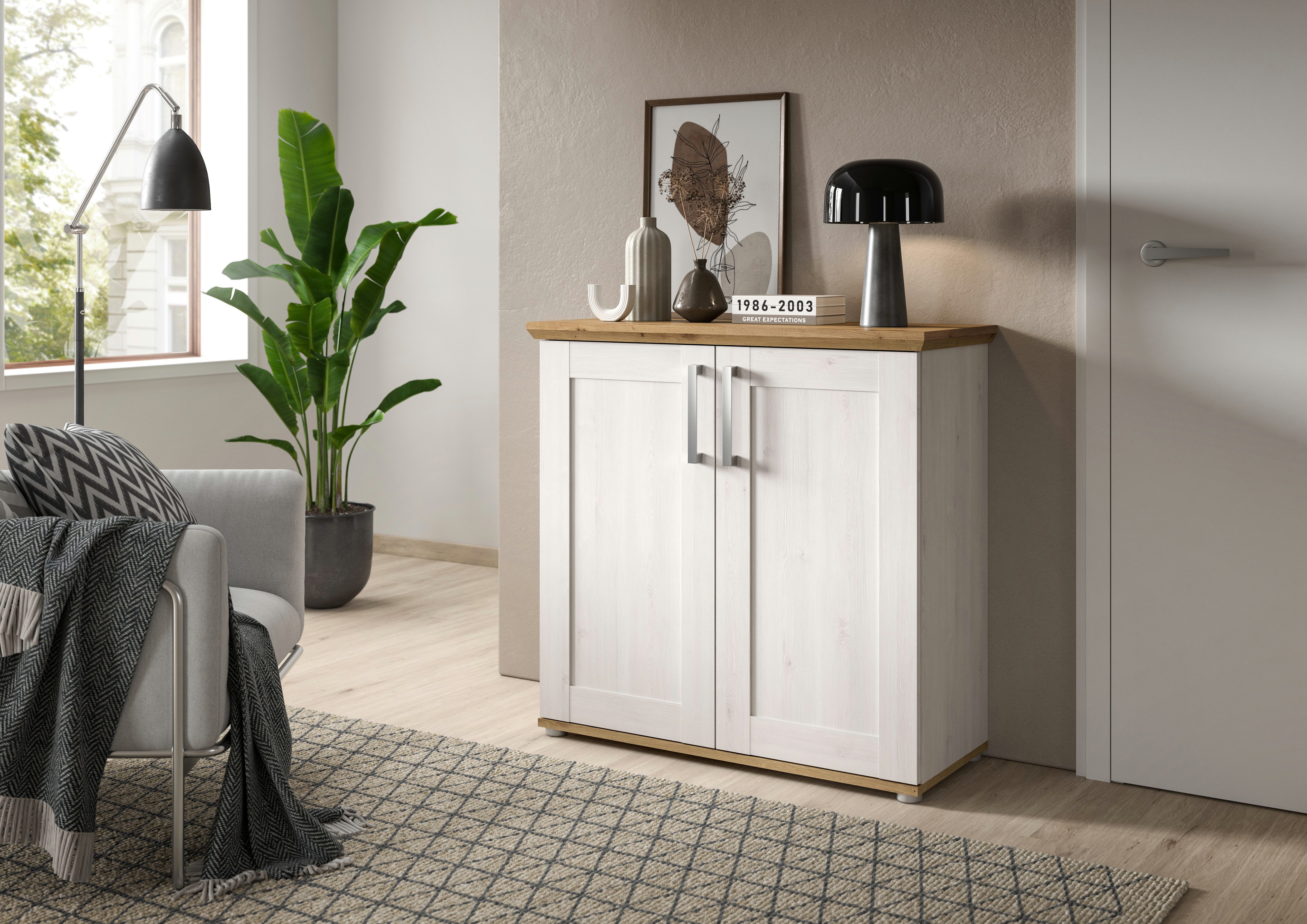 Die Kommode versprüht eine ländliche Romantik. Zum Beispiel in Kombination mit Möbeln aus Holz oder Rattan wird das heimelige Ambiente stilecht ergänzt. Dazu können beispielsweise Fundstücke vom Flohmarkt und Antiquitäten den rustikalen Look ergänzen. Es ist Bestandteil der Serie Cosenza. Von dieser kannst du dich beim Einrichten inspirieren lassen.