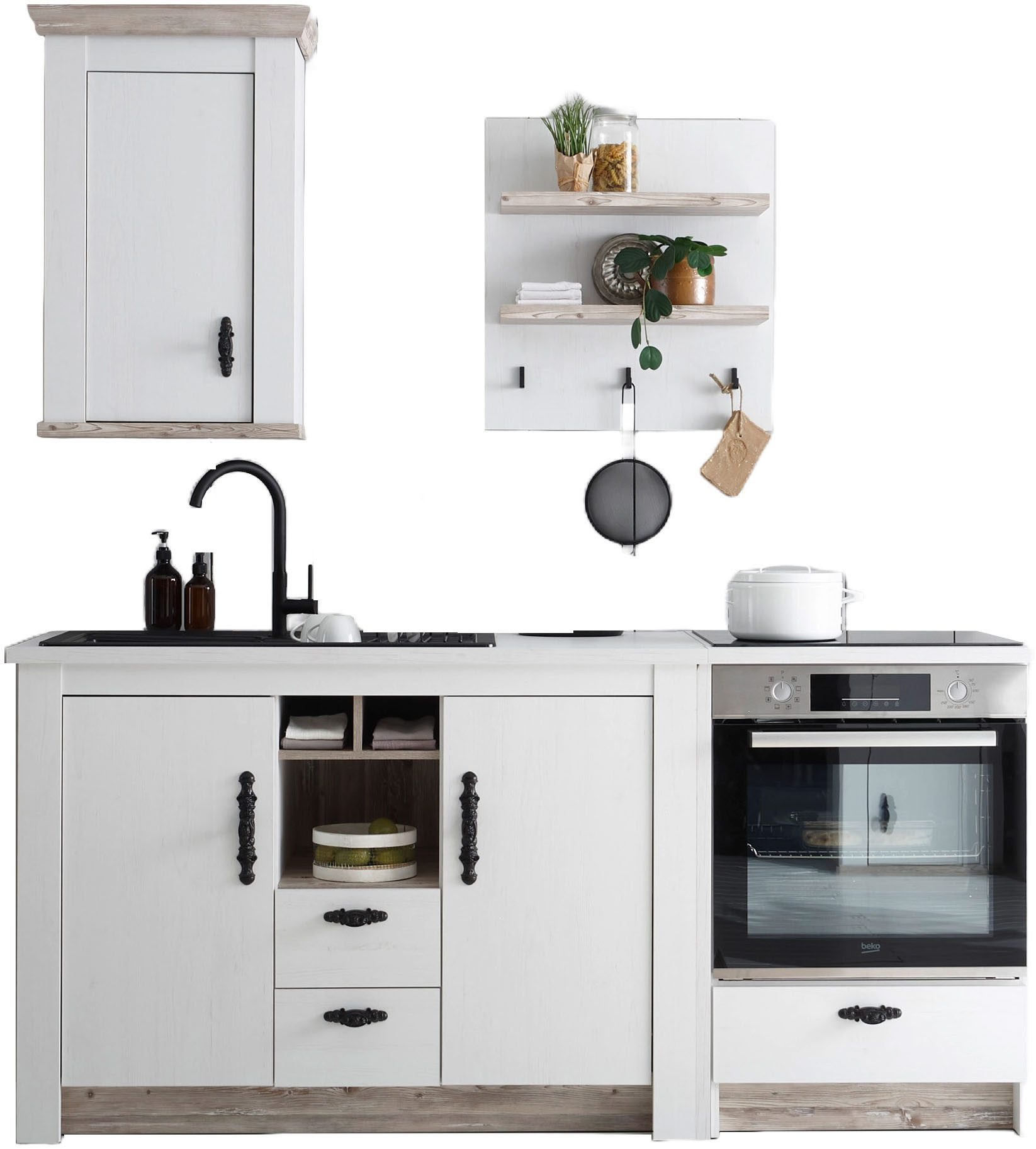 Set beinhaltet | Sideboard, Wandregal, Hängeschrank, Herdumbau |