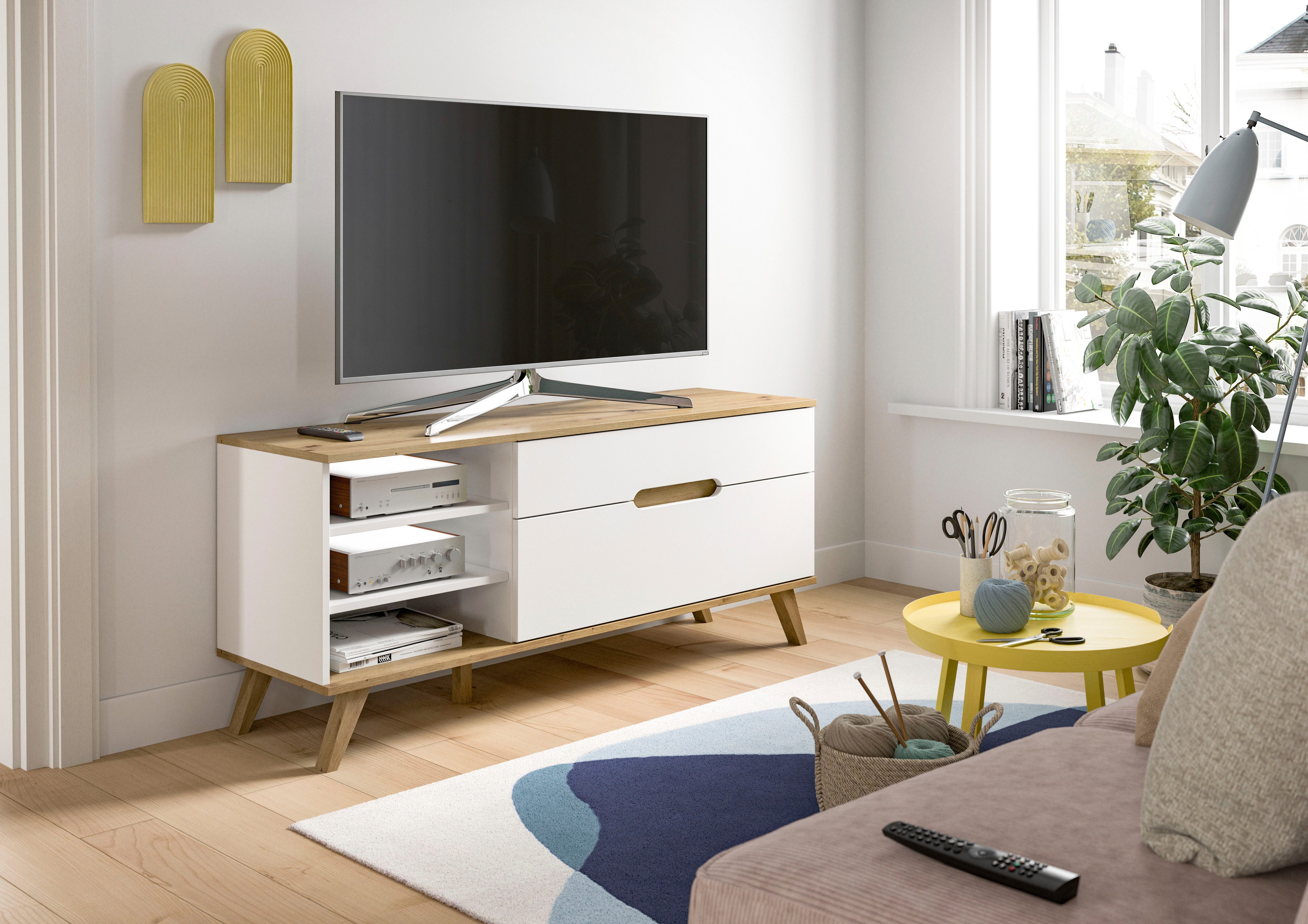 Mach deine vier Wände zu deinem ordentlichen Lieblingsort — mit dem Lowboard »Alesund, Breite 140 cm, 1 Klappe, 1 Schubkasten, konischer Fuß« von Home affaire!