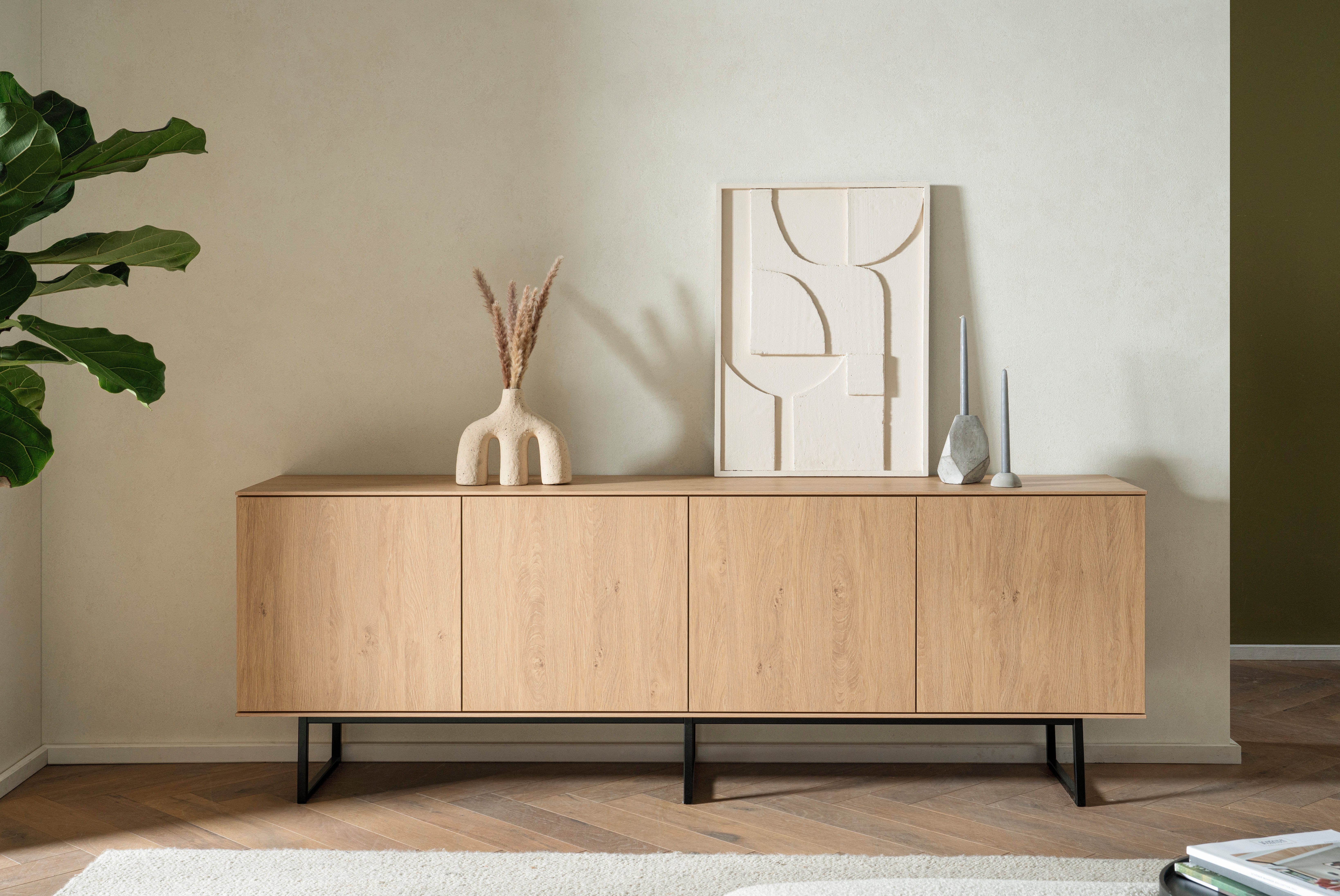 Modern designt, lässt sich das Lowboard mit vielen Einrichtungsstilen harmonisch kombinieren. Als Inspiration: Indem du die Einrichtung-Accessoires in dezenten Farben wie Weiß oder Grau hältst, unterstreichst du den minimalistischen, cleanen Stil. Er gehört zur Lund Serie, die weitere Artikel in diesem Stil enthält. So kannst du ein harmonisches Gesamtbild zaubern.