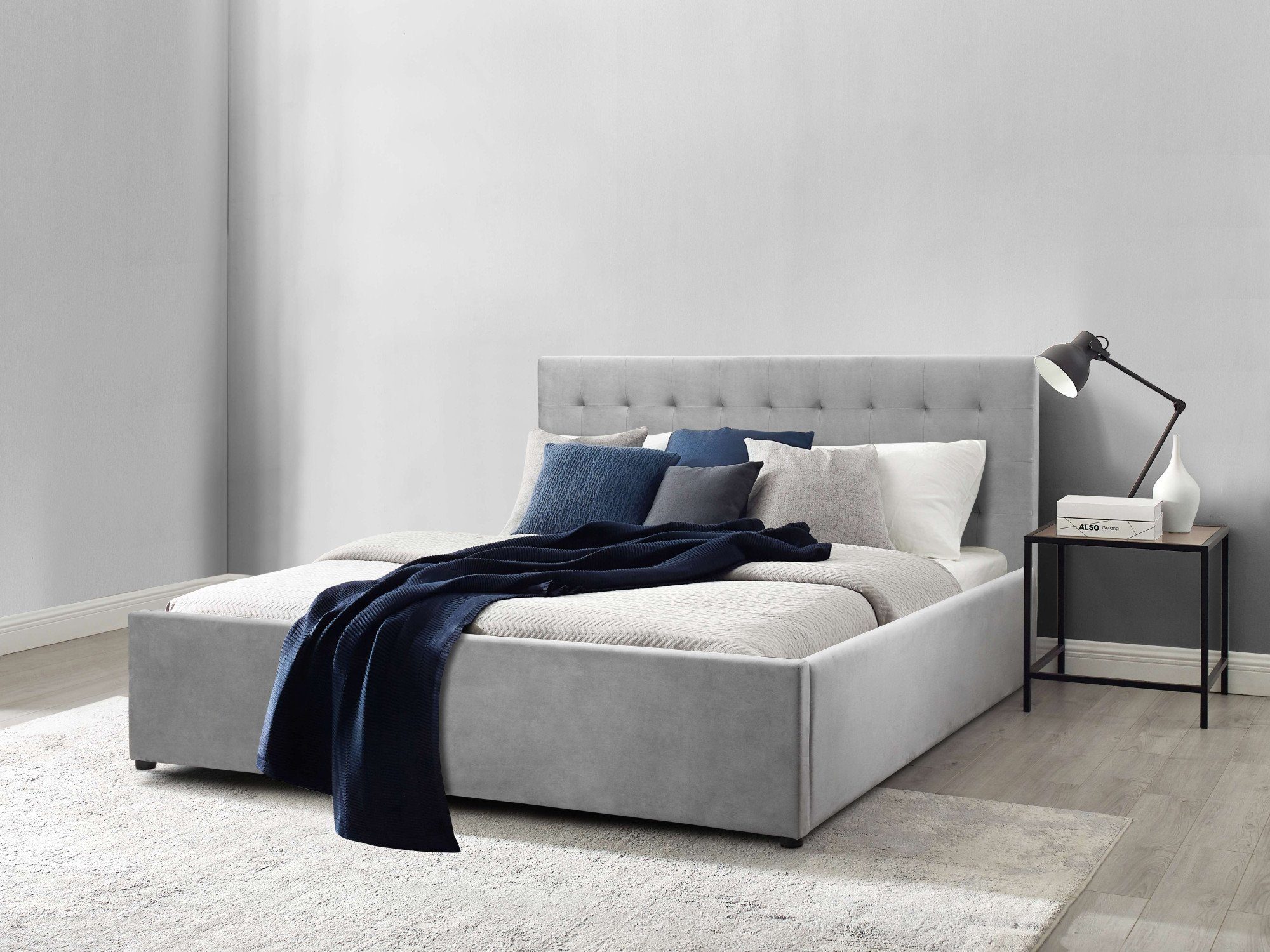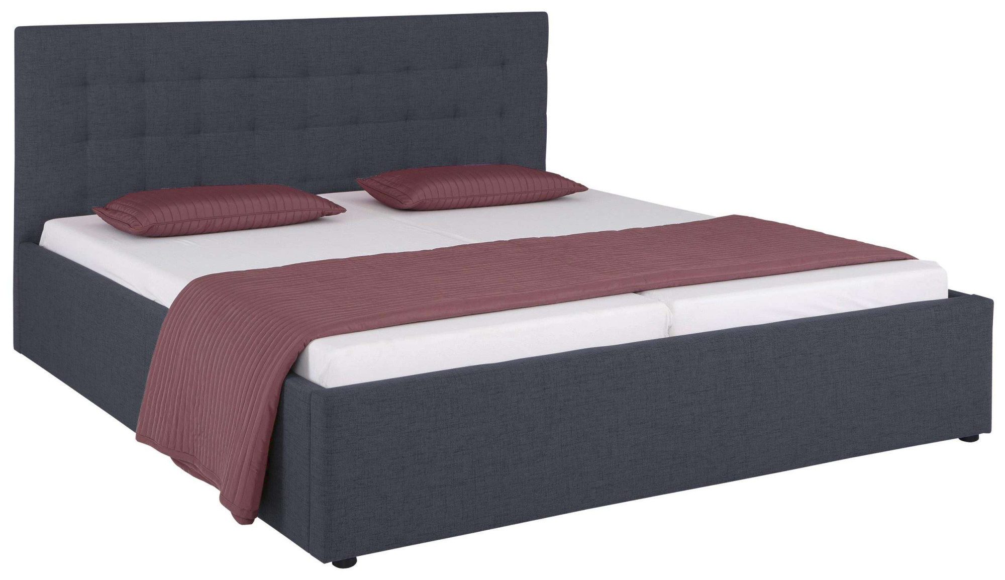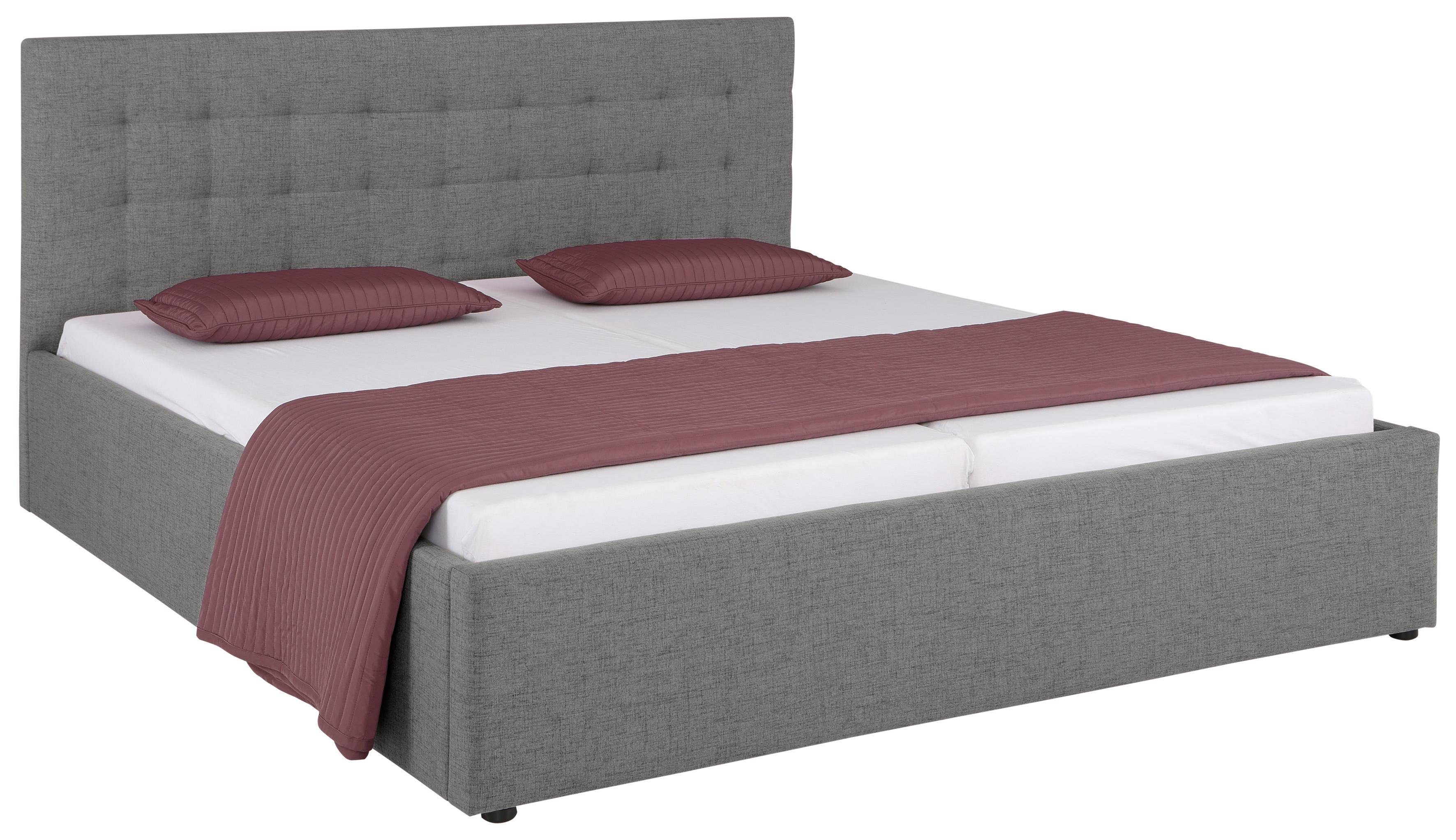 Dieses Polsterbett »Hamar, Knopfsteppung im Kopfteil, bis 250 KG belastbar« von Home affaire zeichnet sich durch einen gemütlichen Bezug und ein gepolstertes Kopfteil aus. An diesem kannst du dich entspannt zurücklehnen und nach einem anstrengenden Tag zur Ruhe kommen. Die maximale Belastbarkeit liegt bei einem Gewicht von 250 Kilogramm. Für eine gute Schlafqualität lässt sich der 2-Zonen-Lattenrost mithilfe von Schiebern individuell auf die persönliche Schlafposition und das eigene Gewicht abstimmen. Dank der erhöhten Liegefläche finden praktische Aufbewahrungsboxen ihren Platz. Das gepolsterte und hellgraue Bettgestell steht auf runden Füßen. Das Kopfteil ist 104 cm hoch.