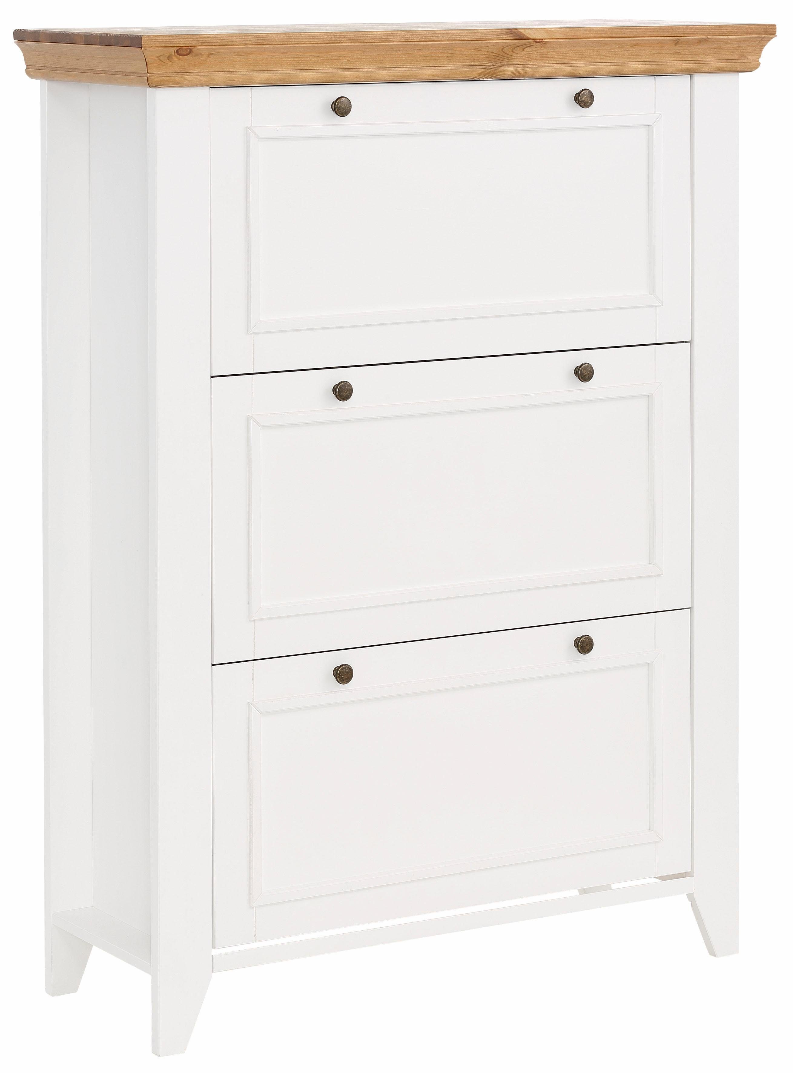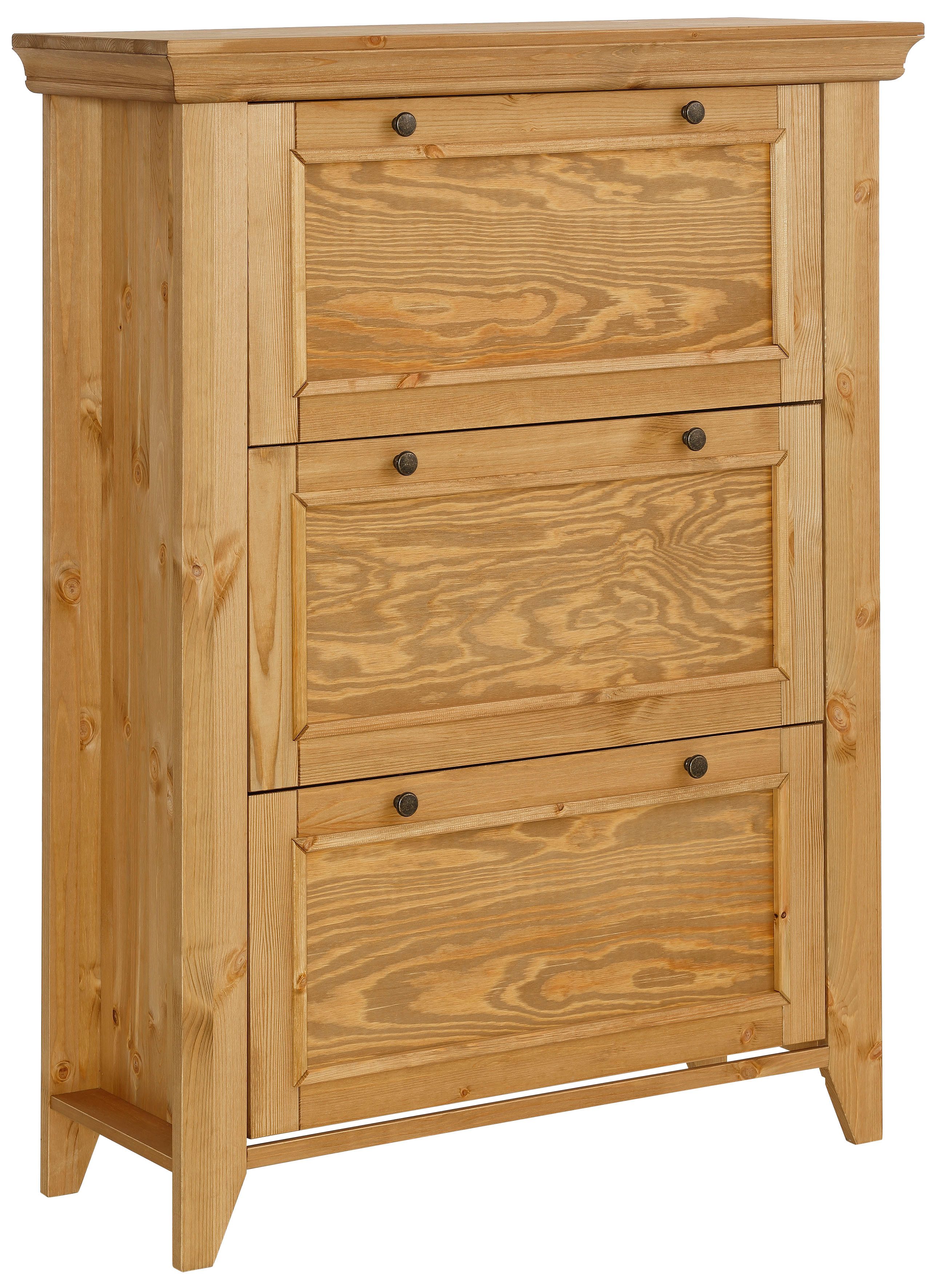 Wissenswertes | Die Schuhschränke » Skandinavia« sind aus FSC®-zertifizierter, massiver Kiefer gefertigt. Wahlweise in gelaugt/geölt oder in weiß/honig erhältlich. Durch die Form der Füße und geradlinigen Fräsungen ist es eine wunderschöne Serie im modernen Landhausstil. Details: