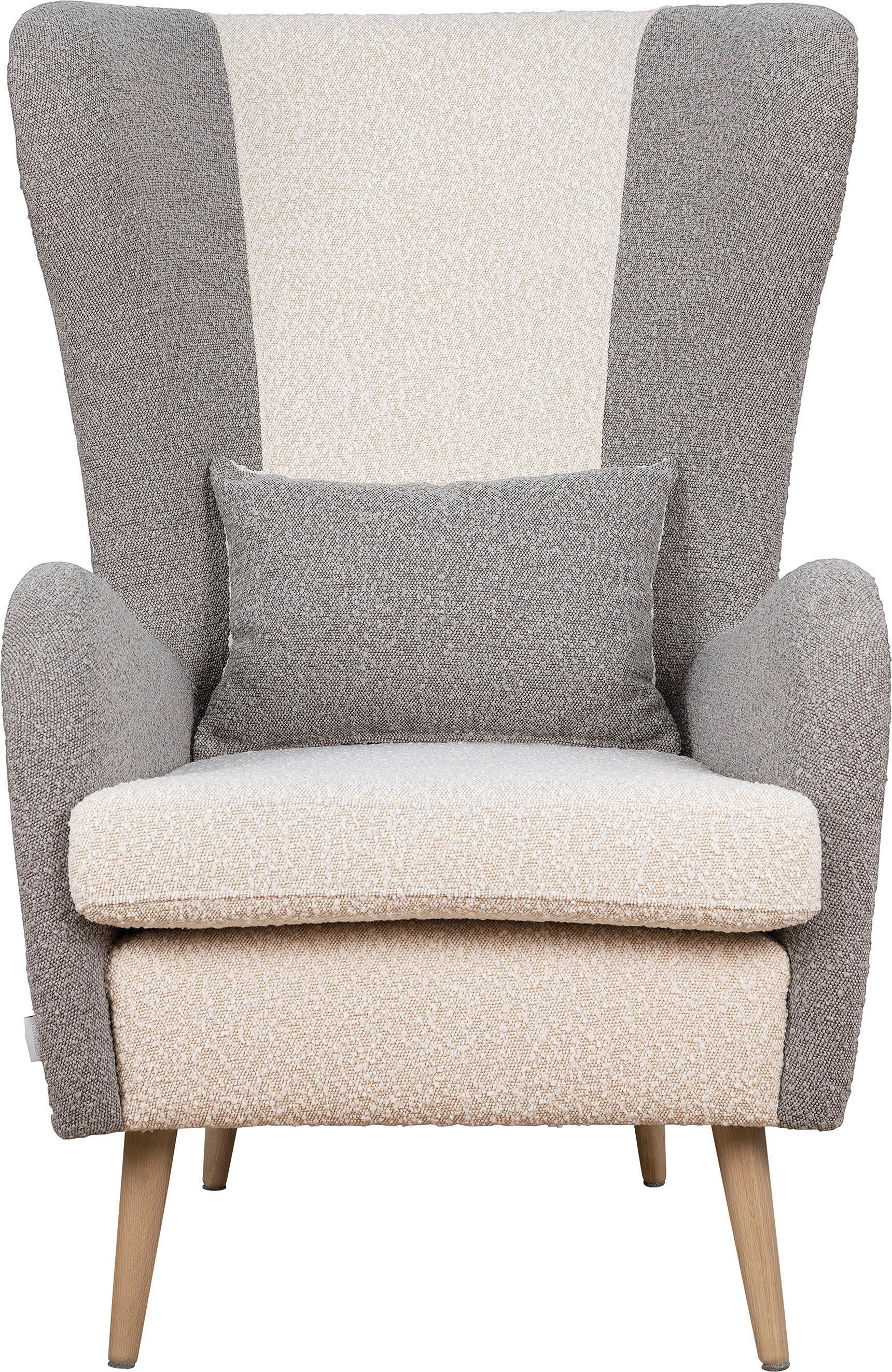 Dieser Sessel »Salla Bezug Bouclé oder Struktur fein, Ohrensessel« von Home affaire ist mit einem Zierkissen ausgestattet, das den Sessel schmückt und gleichzeitig den Sitzkomfort erhöht. Die maximale Belastbarkeit liegt bei einem Gewicht von 120 Kilogramm. Aus Massivholz gefertigt, bestechen die naturfarbenen Füße durch eine unverwechselbare Optik. Dieses Modell wurde von Hand gefertigt.