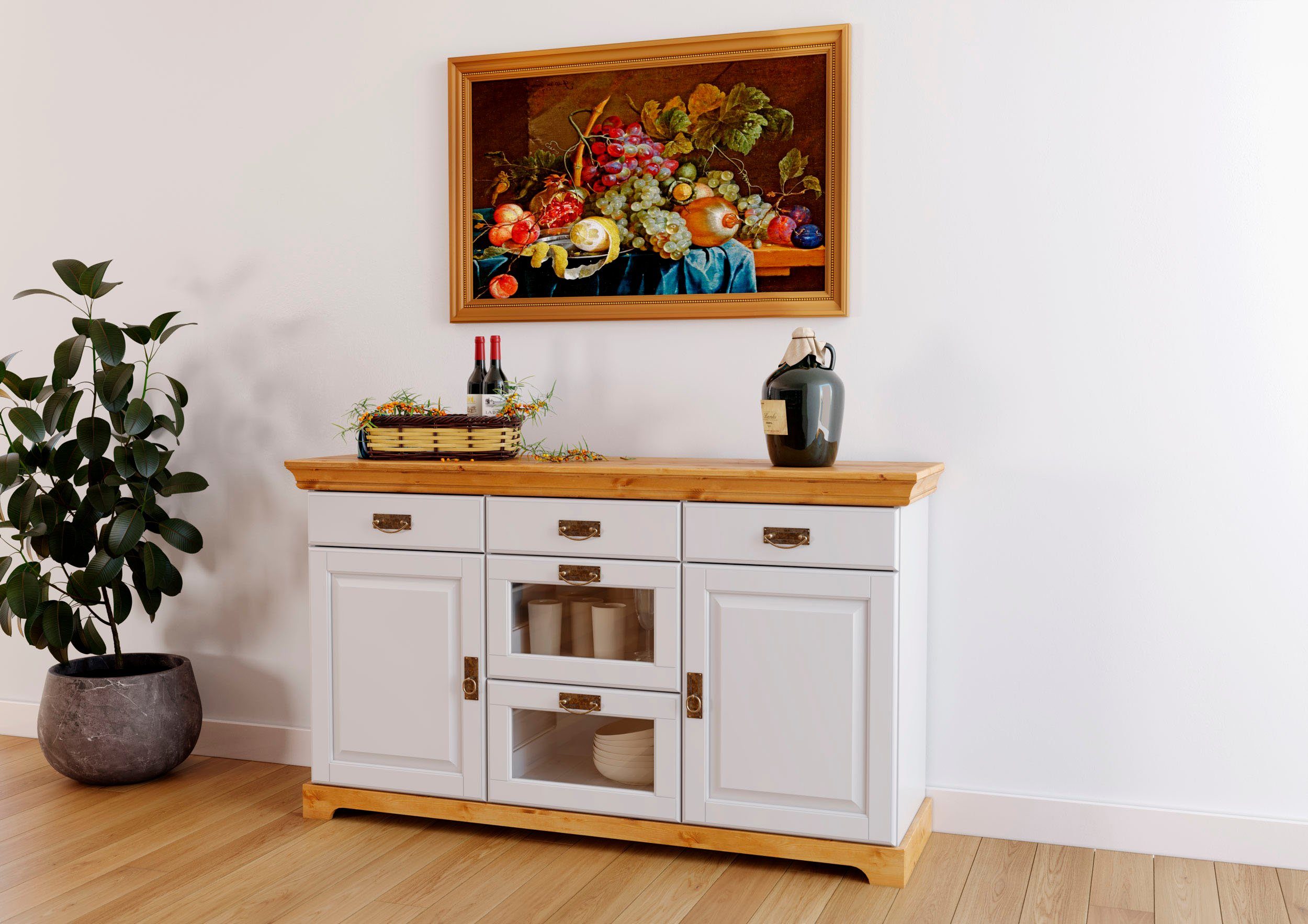Wissenswertes | Sideboard aus FSC®-zertifiziertem massivem Kiefernholz, das aus vorbildlich und schonend bewirtschafteten Wäldern stammt (der Aufsatz ist nicht im Lieferumfang enthalten). Geölt in natur d oder weiß (leicht deckend) lackiert. Mit Metallgriffen und Schubkästen auf Metallschienen. Artikeldetails: