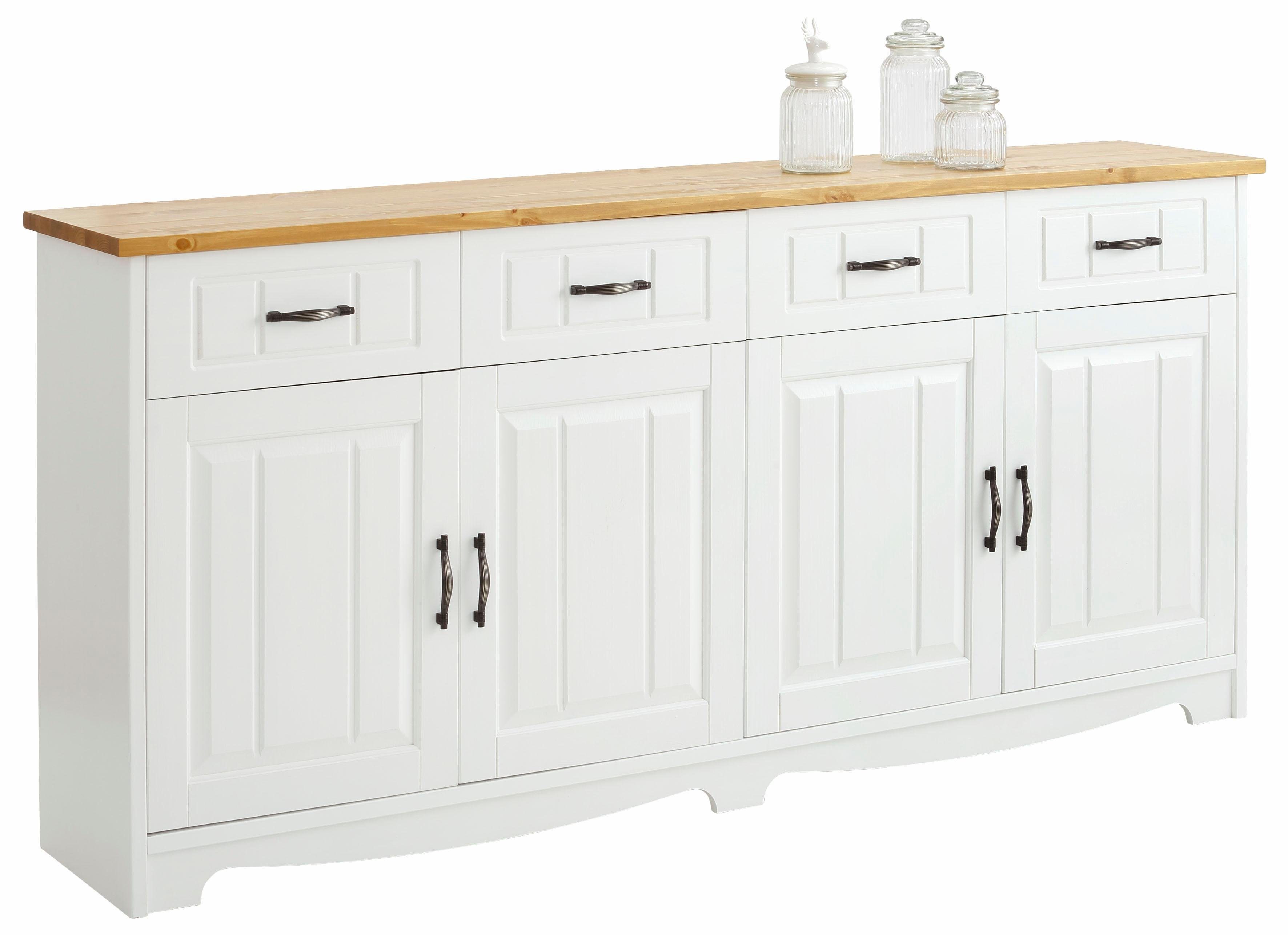 Den gemütlichen Landhausstil des Sideboards in der Inneneinrichtung nochmal aufzugreifen oder zu unterstreichen ist gar nicht schwer: Das Holz passt gut zu anderen Naturmaterialien und zarten Farben wie Creme, Beige oder Grau. Auflockernde Farbtupfer können beispielsweise mit Deko-Elementen wie bunten Vasen oder Kerzen eingebracht werden. Es gehört zur Trinidad Wohnen Serie, die weitere Artikel in diesem Stil enthält. So kannst du ein harmonisches Gesamtbild zaubern.