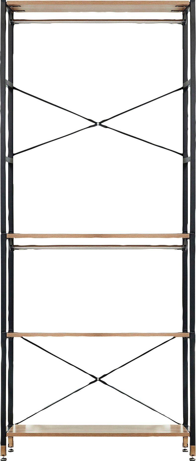 Wissenswertes | 4 Regalböden fest Inklusive Wandhalterung Kleiderstange 80 cm MDF mit Akazie-Dekor Metall pulverbeschichtet (Stahl) |