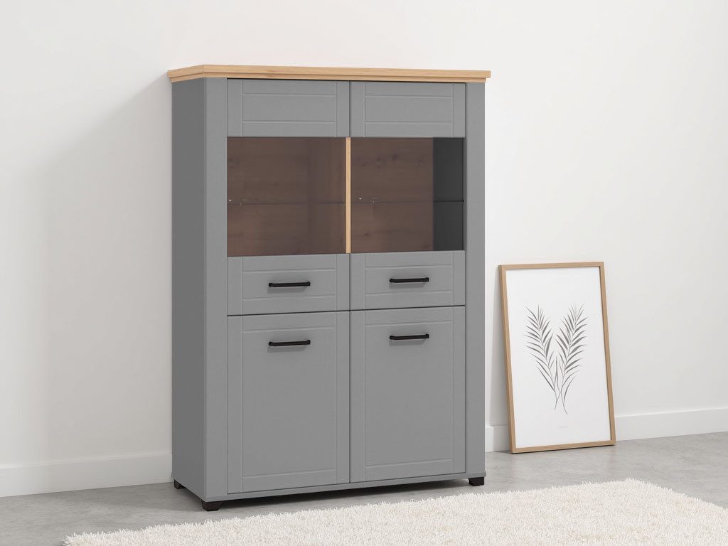 Den gemütlichen Landhausstil der Vitrine in der Inneneinrichtung nochmal aufzugreifen oder zu unterstreichen ist ganz einfach: Das Holz passt gut zu anderen Naturmaterialien und zarten Farben wie Creme, Beige oder Grau. Auflockernde Farbtupfer können beispielsweise mit Deko-Elementen wie bunten Vasen oder Kerzen eingebracht werden. Er gehört zur Valencia Serie, die weitere Artikel in diesem Stil enthält. So kannst du ein harmonisches Gesamtbild zaubern.