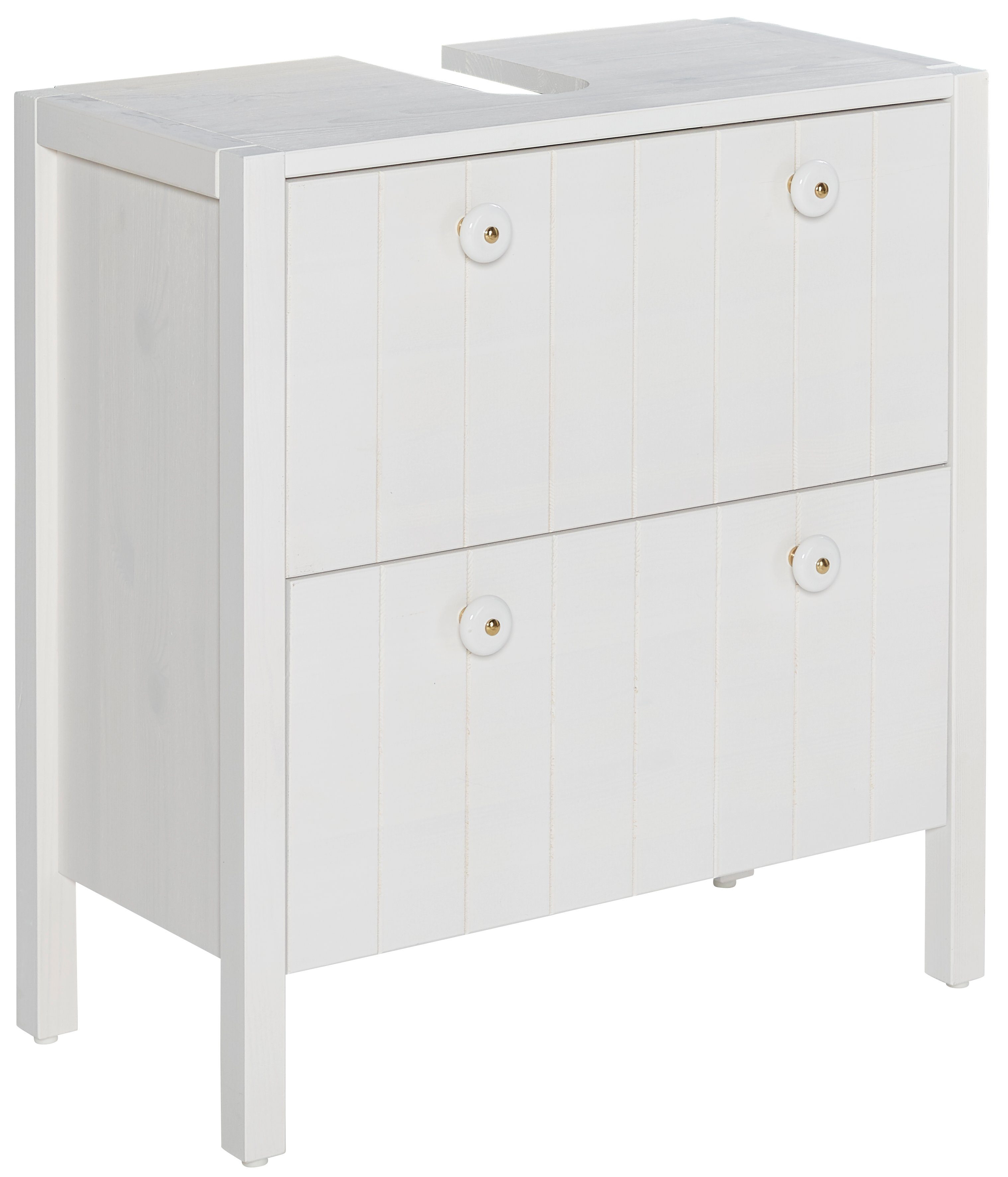Dieser Waschbeckenunterschrank »Tina« von Home affaire ist aus massivem Holz gefertigt und schafft damit nicht nur Ordnung, sondern auch eine angenehm natürliche Atmosphäre in deinen vier Wänden. Einen schönen Schimmer bekommt das Holz dank der geölten Oberfläche, die seinen individuellen Charakter noch betont. Die praktischen Knopfgriffe aus Porzellan sind ein optisches Highlight. Dank der Aufbauanleitung kannst du die Montage selbst vornehmen.