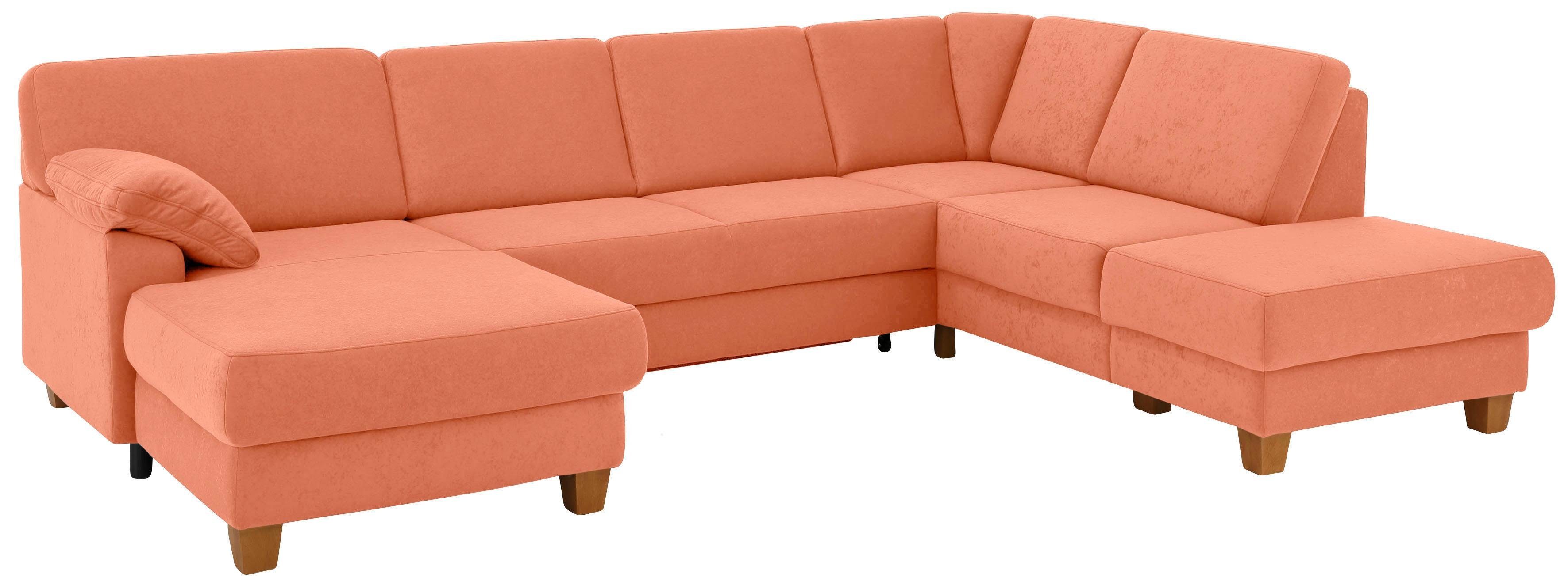 Durch die hochwertige Wellenunterfederung wird die Sitzfläche der Wohnlandschaft »Belfort U-Form« von Home affaire gut gefedert und bleibt dauerhaft elastisch. Darüber hinaus kann das Möbelstück ein separates Gästebett ersetzen und somit Platz einsparen, denn sie ist mit einem praktischen Bettkasten versehen. Bei der Wohnlandschaft befindet sich die Ottomane, von vorne betrachtet, auf der rechten Seite. Die atmungsaktiven Fasern der Luxus-Microfaser ALTARA NUBUCK® machen den Bezug hautfreundlich und strapazierfähig. Der feine Stoff überzeugt auch mit seinem weichen und anschmiegsamen Griff.