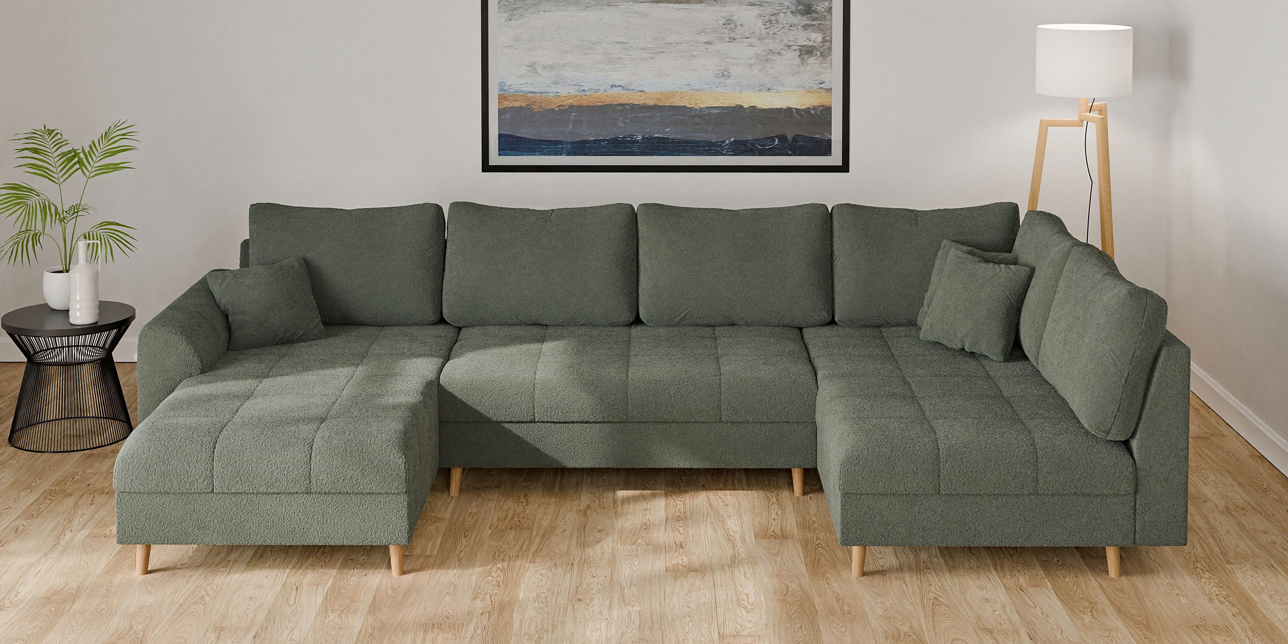 Eine dauerhaft elastische und komfortable Sitzfläche — das bekommst du bei dieser Wohnlandschaft »CHARRE U-Form mit Ottomane, Maße B/T/H: 310/161/81 cm« von Home affaire, die mit einer hochwertigen Wellenunterfederung ausgestattet ist. Worüber du dich auch freuen kannst, ist das passende Rückenkissen, die dekorativ und zugleich komfortabel sind. Bei der Wohnlandschaft befindet sich die Recamiere, von vorne betrachtet, auf der linken Seite. Bei etwa 120 Kilogramm liegt die maximale Belastbarkeit pro Sitzplatz. Der Bezug aus Strukturstoff ist angenehm weich, sehr beständig und neigt kaum zur Faltenbildung. Dieses Modell wurde von Hand gefertigt.