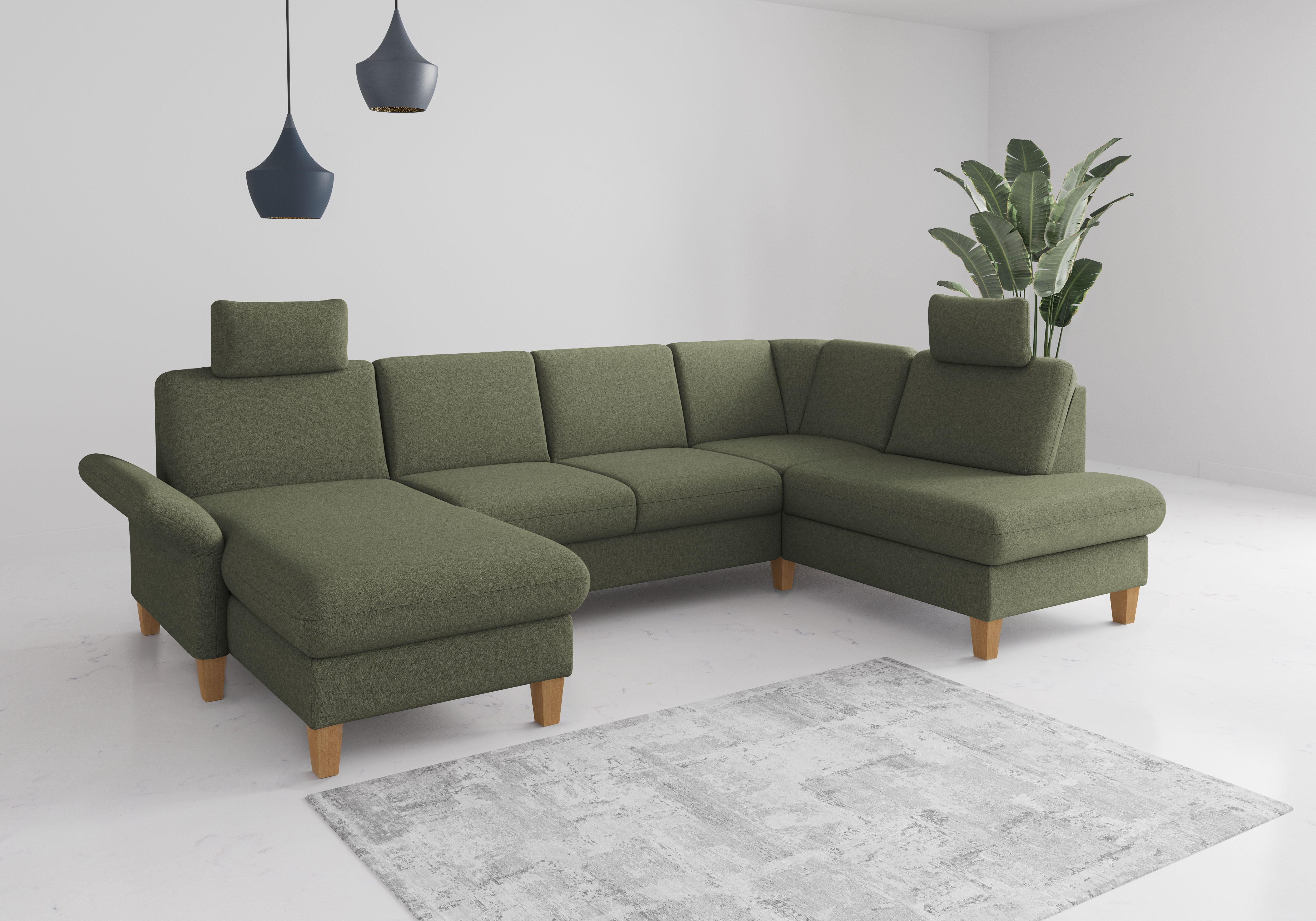 Eine dauerhaft elastische und komfortable Sitzfläche — das bekommst du bei dieser Wohnlandschaft »Rochelle, U-Form« von Home affaire, die mit einer hochwertigen Wellenunterfederung ausgestattet ist. Bei der Wohnlandschaft befindet sich die Recamiere, von vorne betrachtet, links. Die maximale Belastbarkeit liegt bei einem Gewicht von 520 Kilogramm. Aus Holz gefertigt, bestechen die Buche eichefarbigen Füße durch eine unverwechselbare Optik. Dieses Modell wurde von Hand gefertigt.