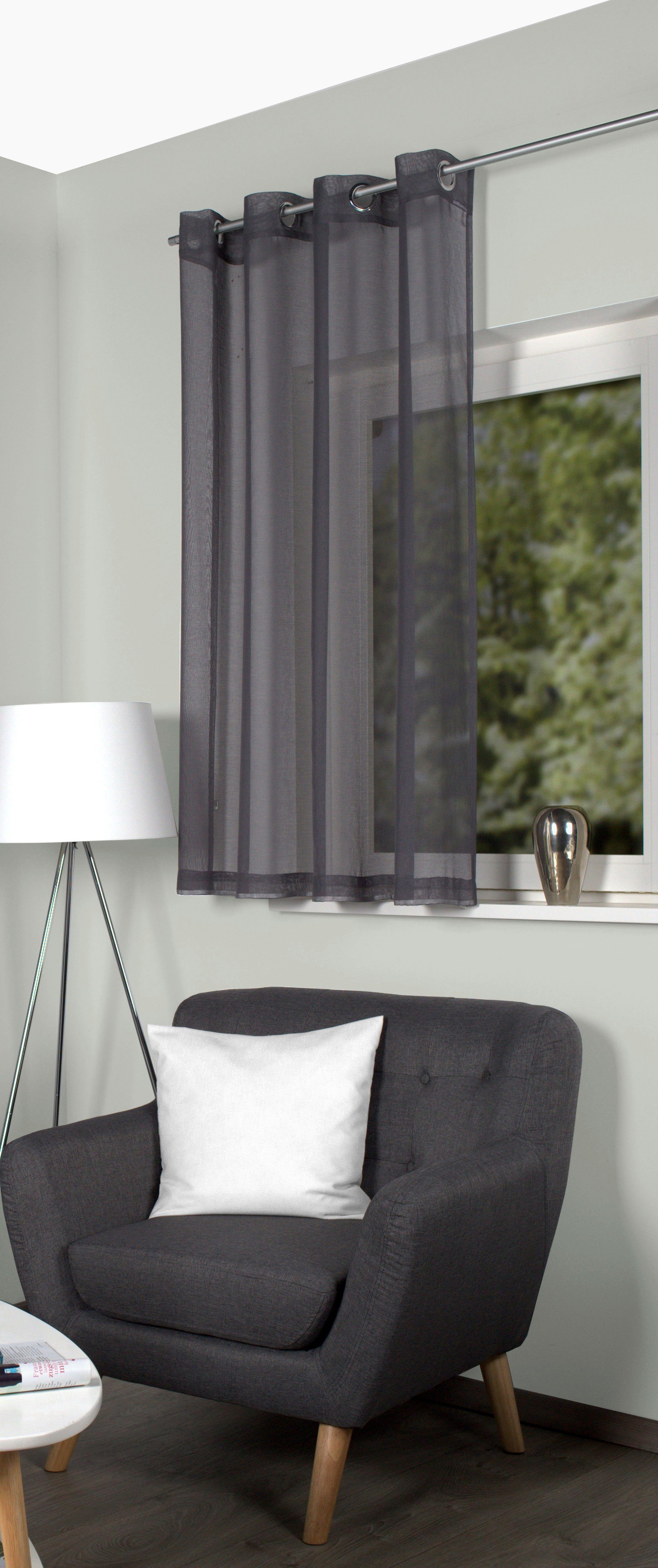 Hinweis Materialart | Eine Voilequalität bezeichnet ein zartes, luftiges Gewebe, das Lichtmilderung ohne Verdunkeln bietet. Bei farbigen Voiles bestimmen Sie selbst durch die Stärke des Kräuselns den gewünschten Farbeindruck zwischen hell (bei nur leichter Kräuselung) und intensiv farbig (bei stärkerer Kräuselung). Voile eignet sich durch seine variantenreichen Farben und Dessins hervorragend für Freihand-Dekorationen zur individuellen Fenster- und Raumgestaltung. |