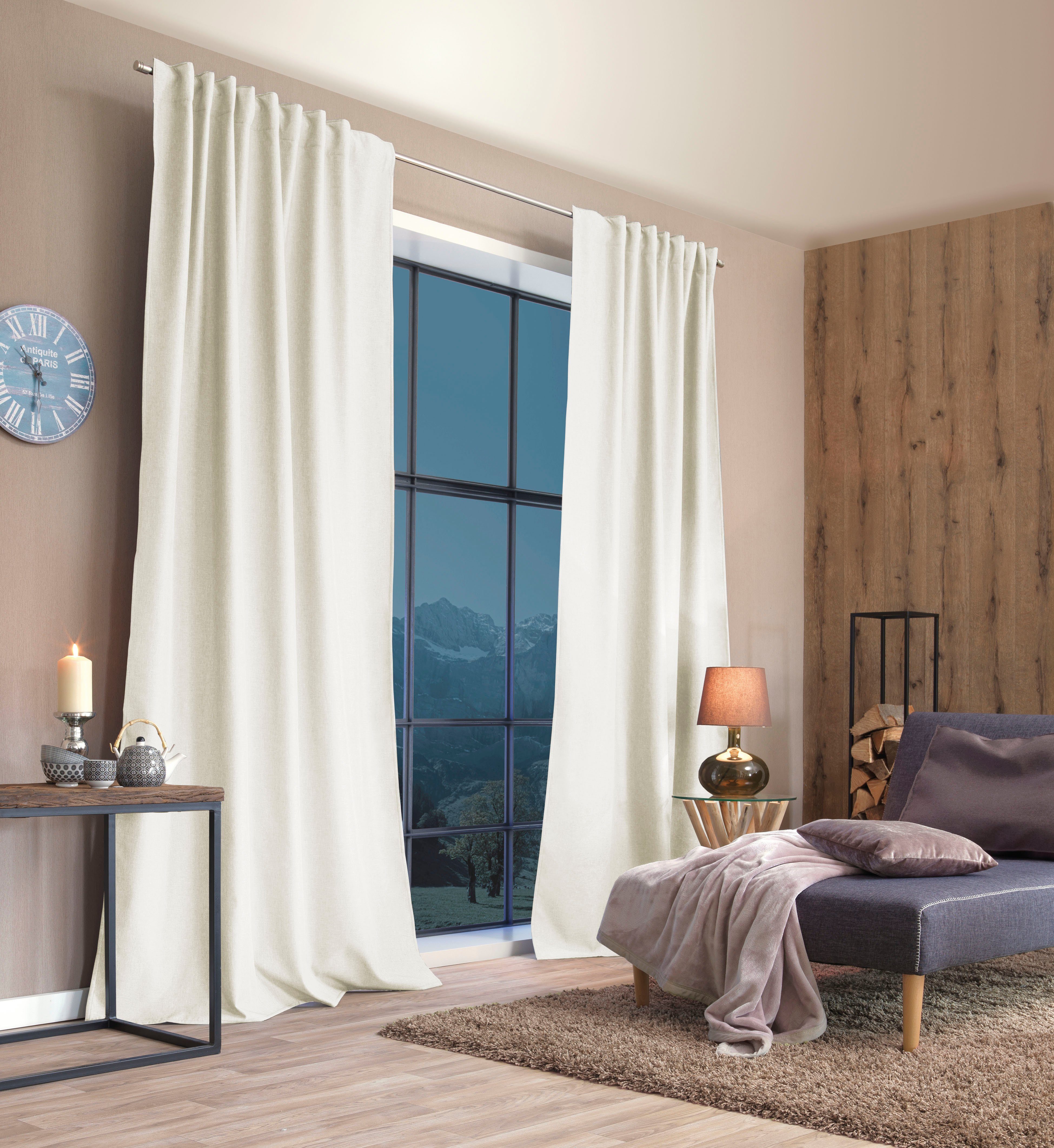 Hinweis Aufhängung | Montageart 1: Aufhängung mittels Gardinenröllchen (nicht im Lieferumfang enthalten) in der Gardinenschiene. Montageart 2: Aufhängung mittels verdeckter Schlaufen an der Gardinenstange. |