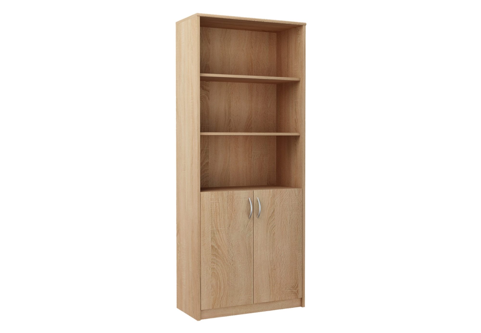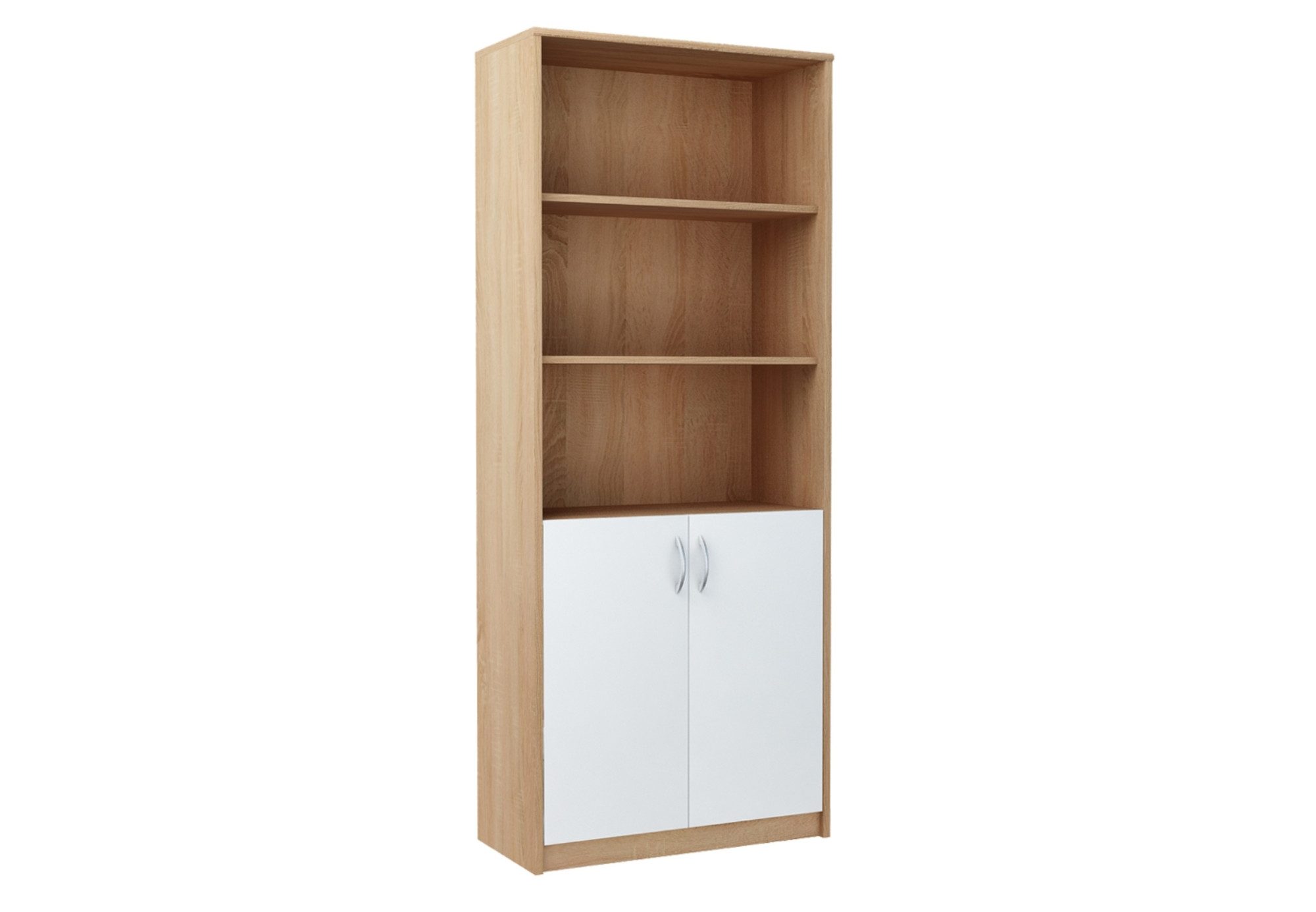 Diese stilvolle und funktionale Bücherregal bietet reichlich Stauraum und verleiht jedem Raum eine moderne Eleganz. Es verfügt über sechs geräumige Regale, die sich ideal zur Organisation von Büchern, Dekorationsgegenständen oder anderen Utensilien eignen. Das Bücherregal besteht aus einer langlebigen laminierten Platte mit einer Stärke von 16 mm, die für Stabilität und Langlebigkeit sorgt. Die vordere Kante der Tischplatte ist mit Soft-Edge-Technologie gefertigt, was eine glatte und sichere Oberfläche gewährleistet, die das Gesamtdesign ergänzt. Die hochwertigen Griffe aus Polymermaterial verleihen dem Regal einen Hauch von Raffinesse, während die matte Oberfläche dem Bücherregal ein elegantes, zeitgemäßes Aussehen verleiht. Mit zwei Türen für zusätzlichen Stauraum und einem klaren, modernen Look ist dieses Bücherregal sowohl praktisch als auch stilvoll.
