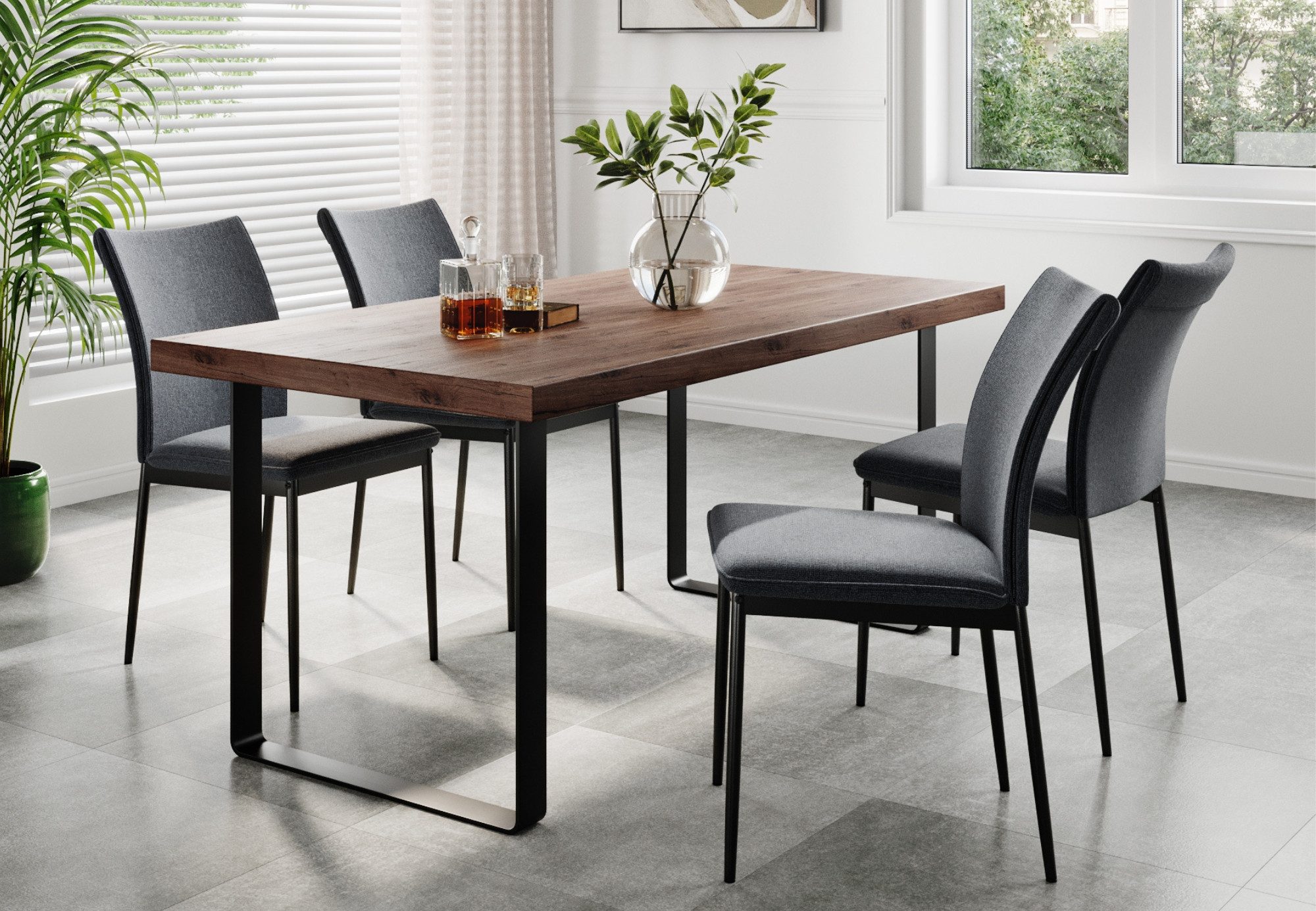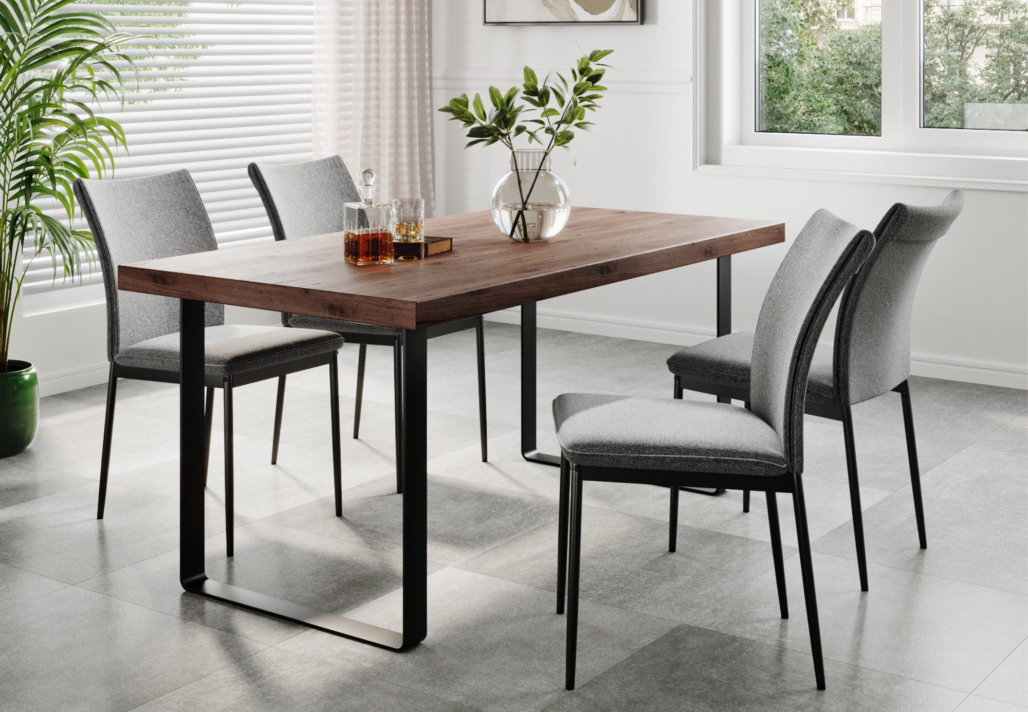 Das pulverbeschichtete Metallgestell in Schwarz bietet stabilen Halt und ergänzt das Gesamtbild mit einem edlen, zeitgemäßen Touch. Dank der platzsparenden Form eignet sich dieses Stuhlset auch optimal für kleinere Räume.