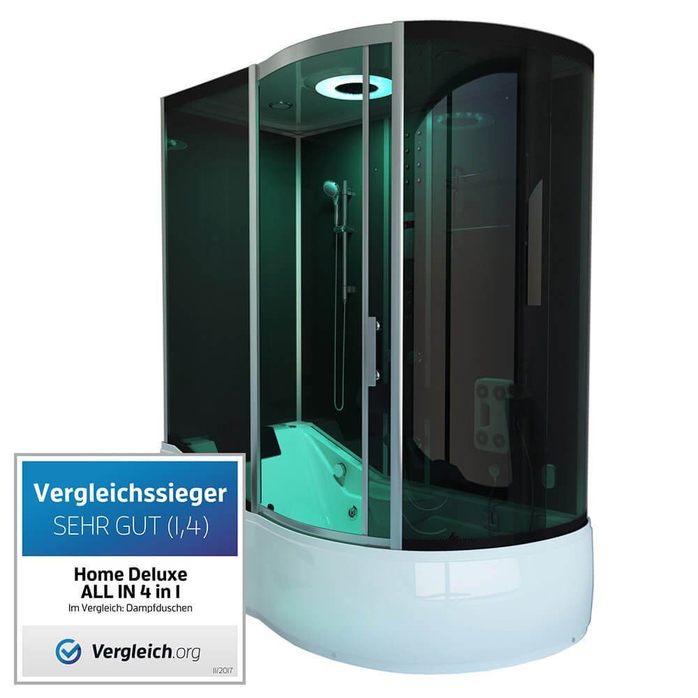 Wir haben einen Grund zum Jubeln: Auf der bekannten Test- und Vergleichsseite Vergleich.org wurden Dampfduschen auf Herz und Nieren getestet. Unsere ALLIN 4in1 ist mit deutlichem Vorsprung Testsieger geworden. In den Категории Funktion, Handhabung, Verarbeitung und Design sticht sie deutlich heraus.