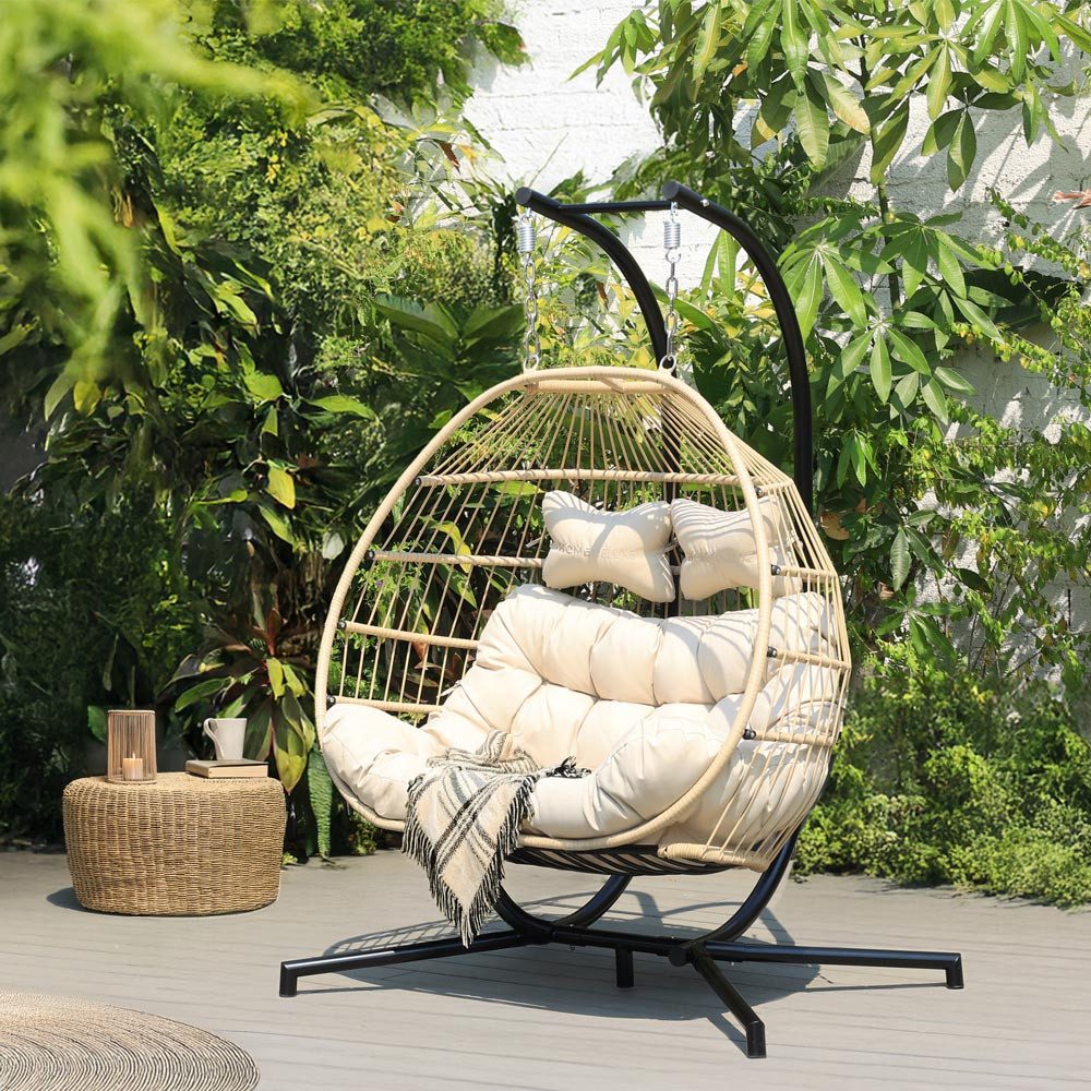 Der faltbare Hängesessel LOMA bietet flexible Entspannungsmöglichkeiten für Balkon, Garten oder Wohnzimmer. Durch sein modernes Design mit offener Korbstruktur passt er in jedes Ambiente. Die gefederte Aufhängung und die stabile, freistehende Konstruktion sorgen für hohen Komfort und maximale Bewegungsfreiheit. Die bequeme Polsterung lädt zum Verweilen ein, während Anti-Rutsch Füße und hohe Tragkraft für Sicherheit und Stabilität stehen. Dank der langlebigen, wetterfesten Verarbeitung eignet sich der Hängesessel für den Innen- und Außenbereich. Faltbar und einfach zu transportieren, ideal für platzsparende Aufbewahrung oder unterwegs.