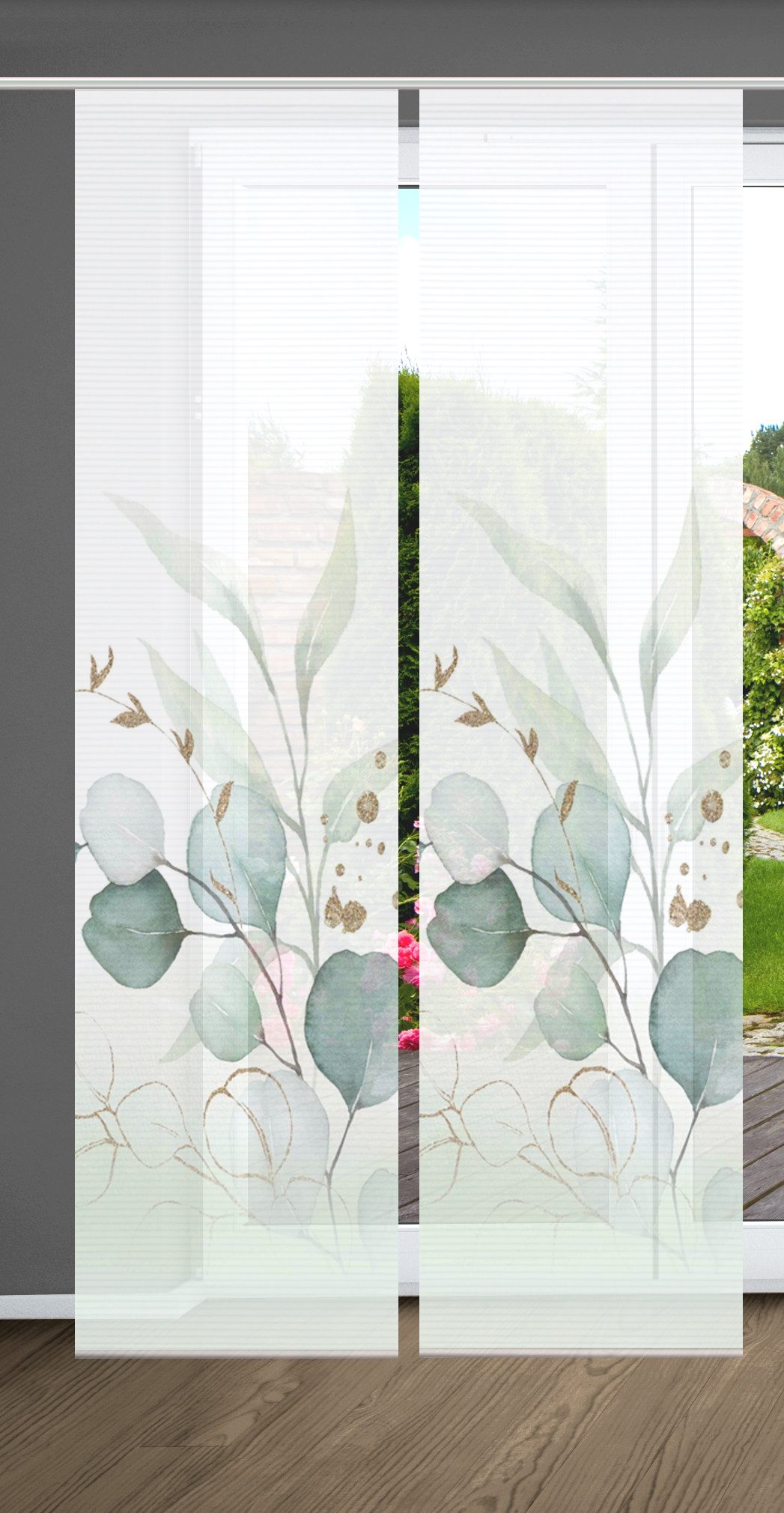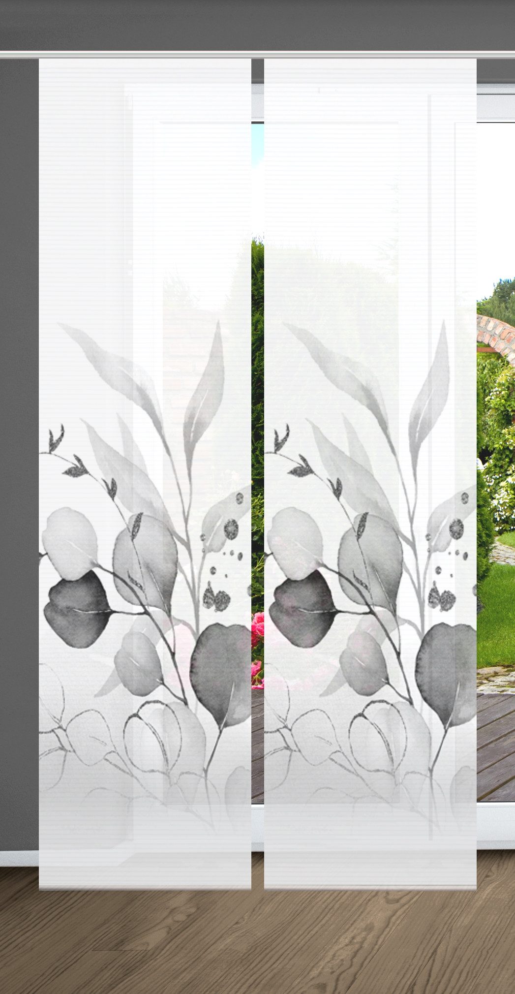 Hinweis Dekoration | Die angegebenen Maße sind die fertig dekorierten Maße. Eine Schiebegardine ist eine schmale, glatt hängende Stoffbahn, die sich sowohl als Sichtschutz als auch zur Raumteilung eignet. Durch die Schiebetechnik sind Schiebegardinen sehr flexibel einsetzbar. |