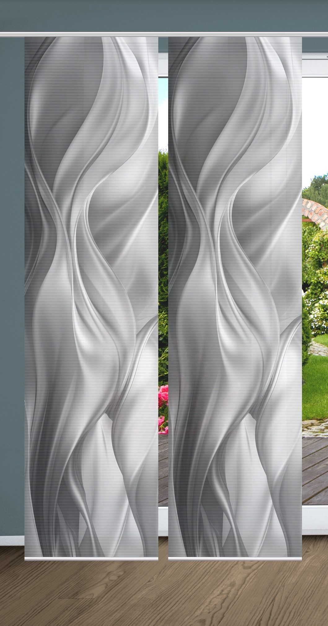 Hinweis Dekoration | Die angegebenen Maße sind die fertig dekorierten Maße. Eine Schiebegardine ist eine schmale, glatt hängende Stoffbahn, die sich sowohl als Sichtschutz als auch zur Raumteilung eignet. Durch die Schiebetechnik sind Schiebegardinen sehr flexibel einsetzbar. |