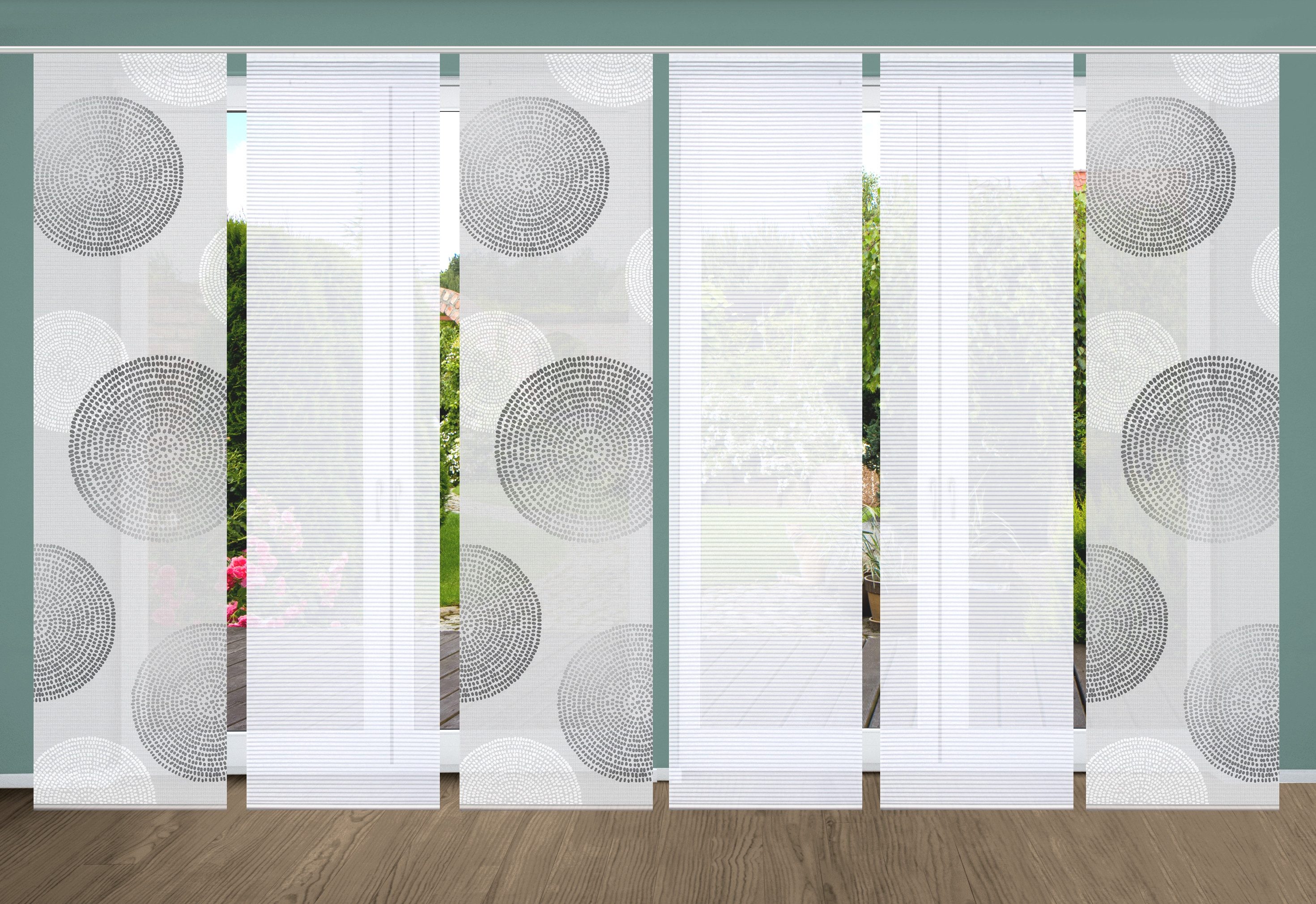 Hinweis Dekoration | Die angegebenen Maße sind die fertig dekorierten Maße. Eine Schiebegardine ist eine schmale, glatt hängende Stoffbahn, die sich sowohl als Sichtschutz als auch zur Raumteilung eignet. Durch die Schiebetechnik sind Schiebegardinen sehr flexibel einsetzbar. |